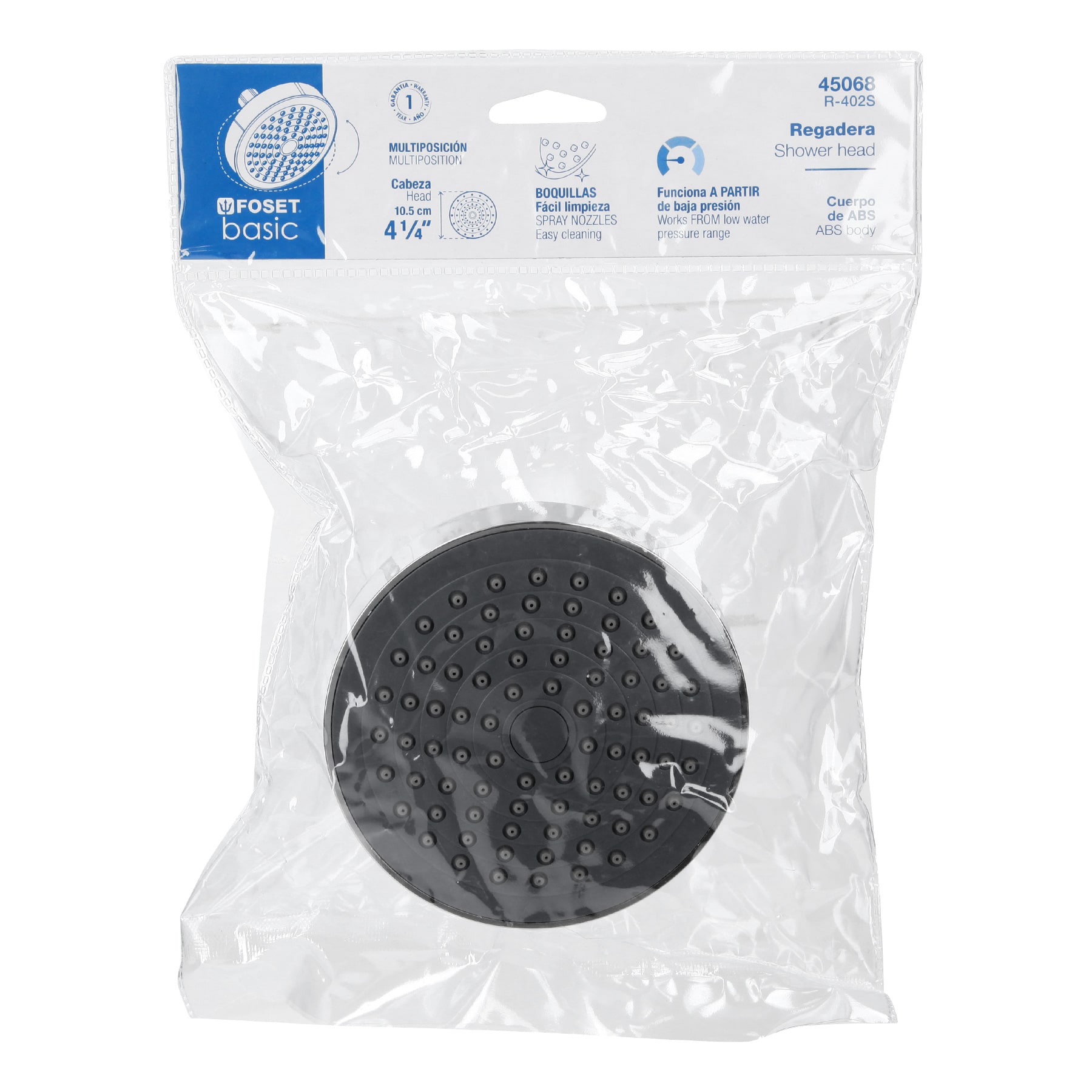 Regadera redonda de ABS 4-1/4′ sin brazo, Foset Basic
