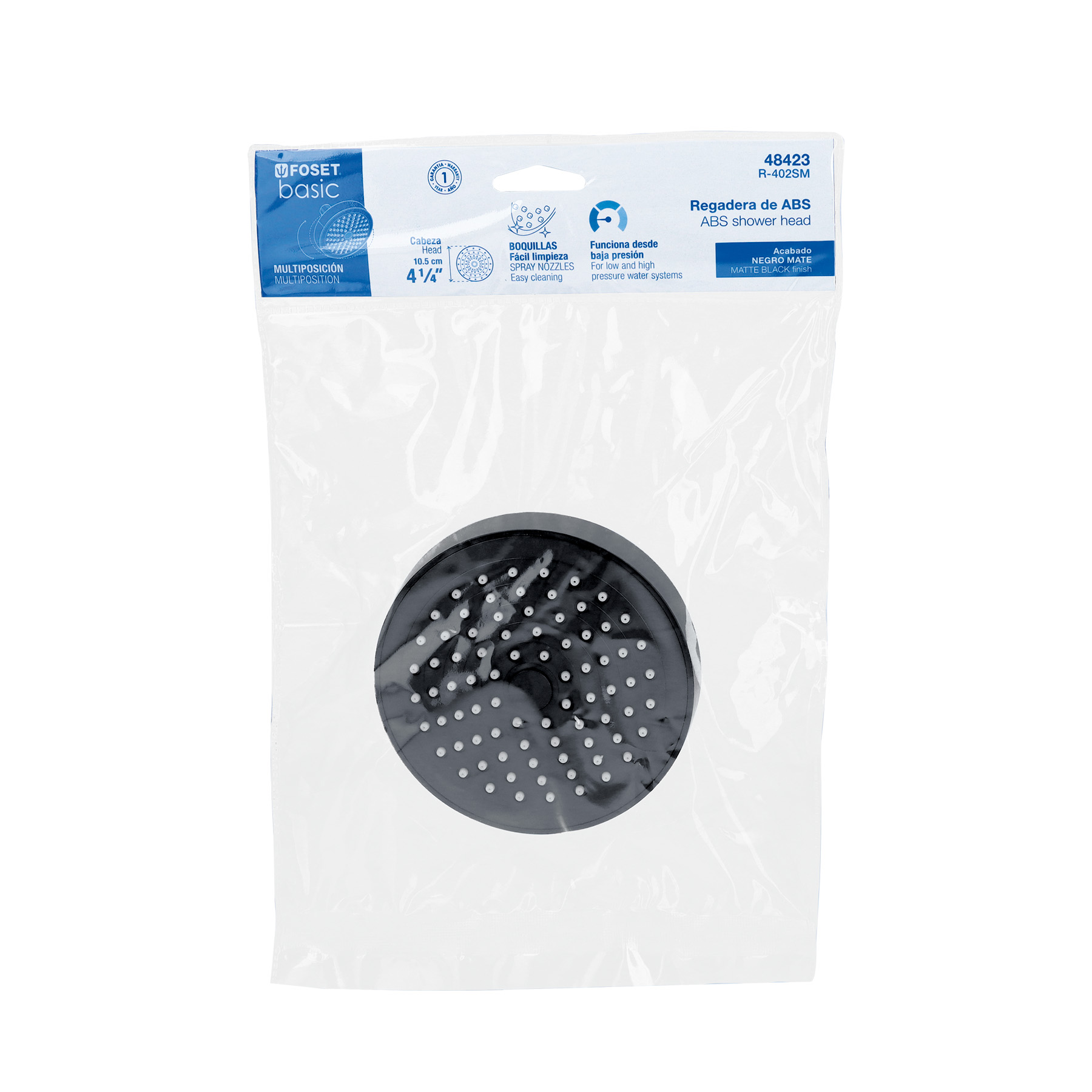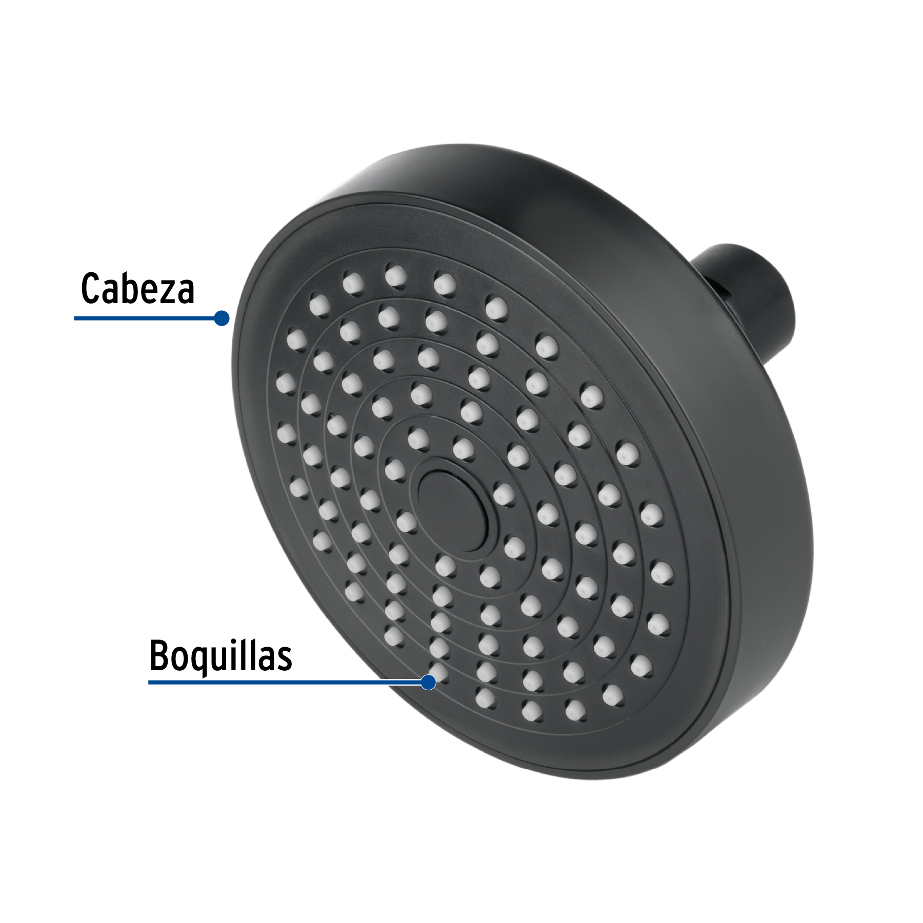 Regadera redonda de ABS 4-1/4′ sin brazo, negro, Basic