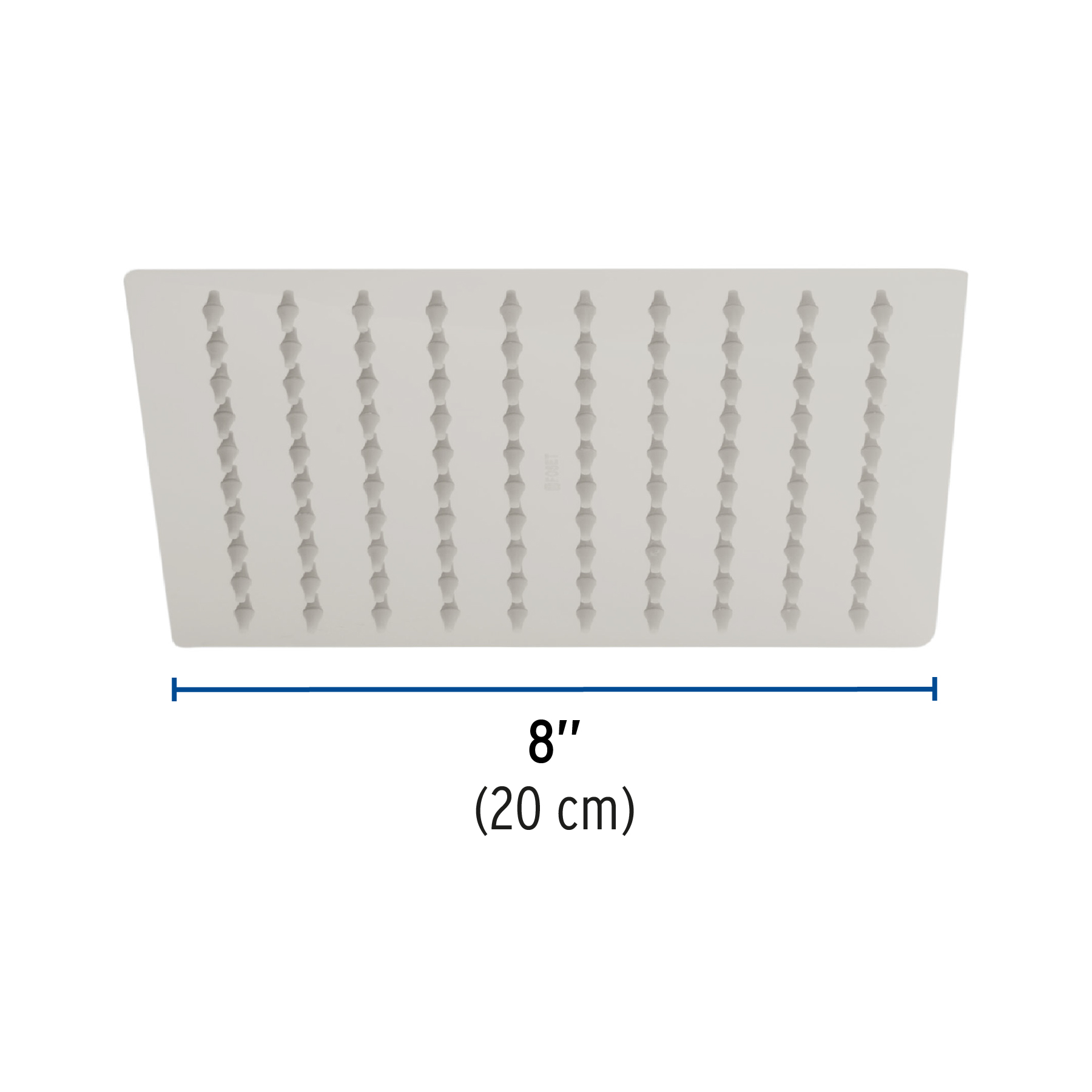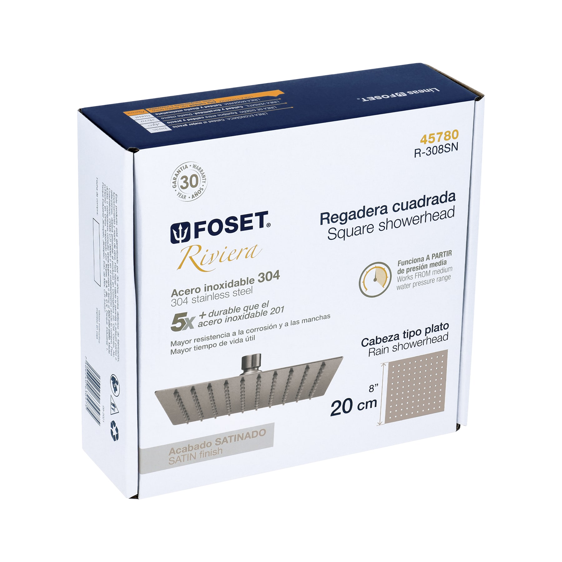 Regadera plato cuadrado 8′ sin brazo, satín, FOSET RIVIERA
