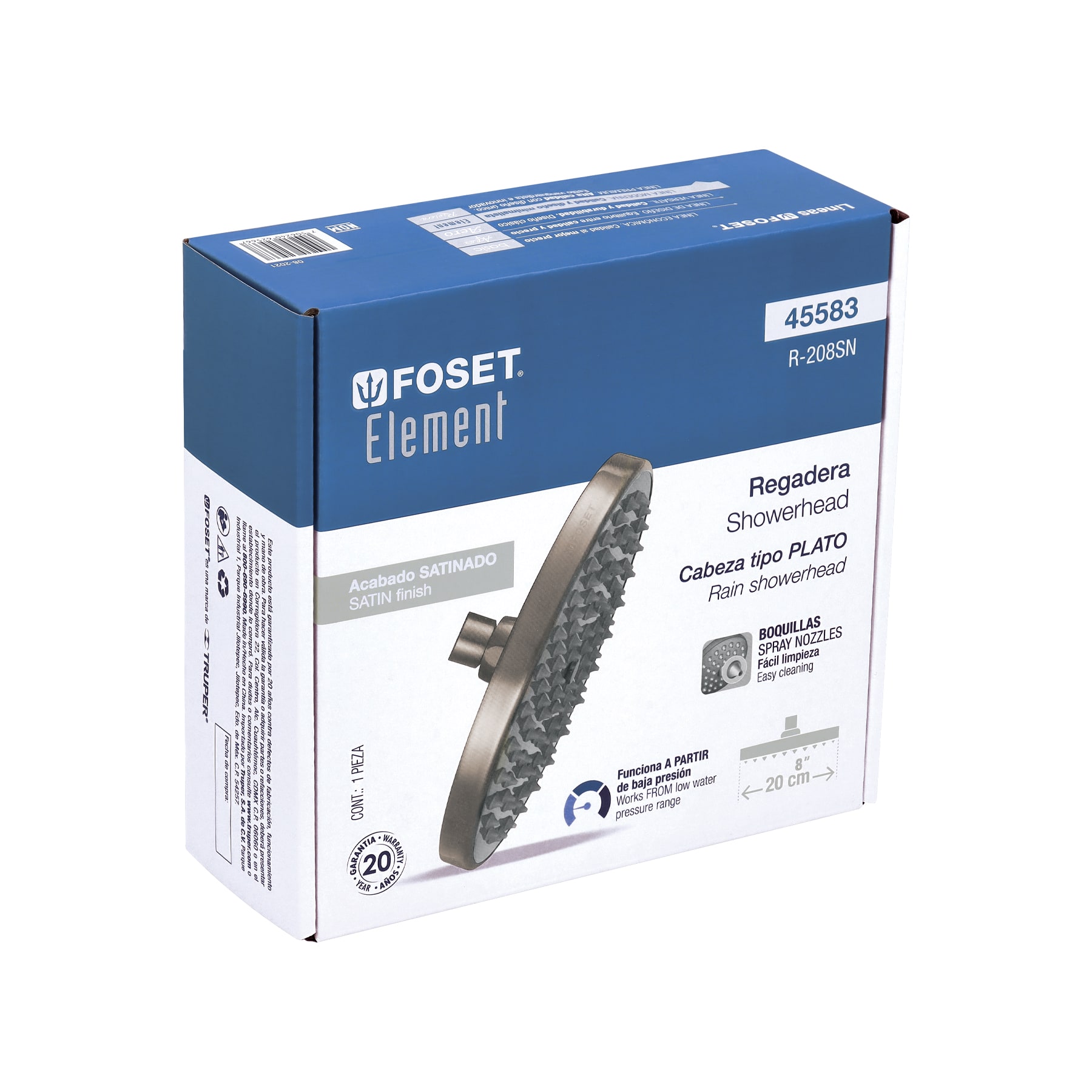 Regadera satín 8′ plato redondo, sin brazo, Foset Element
