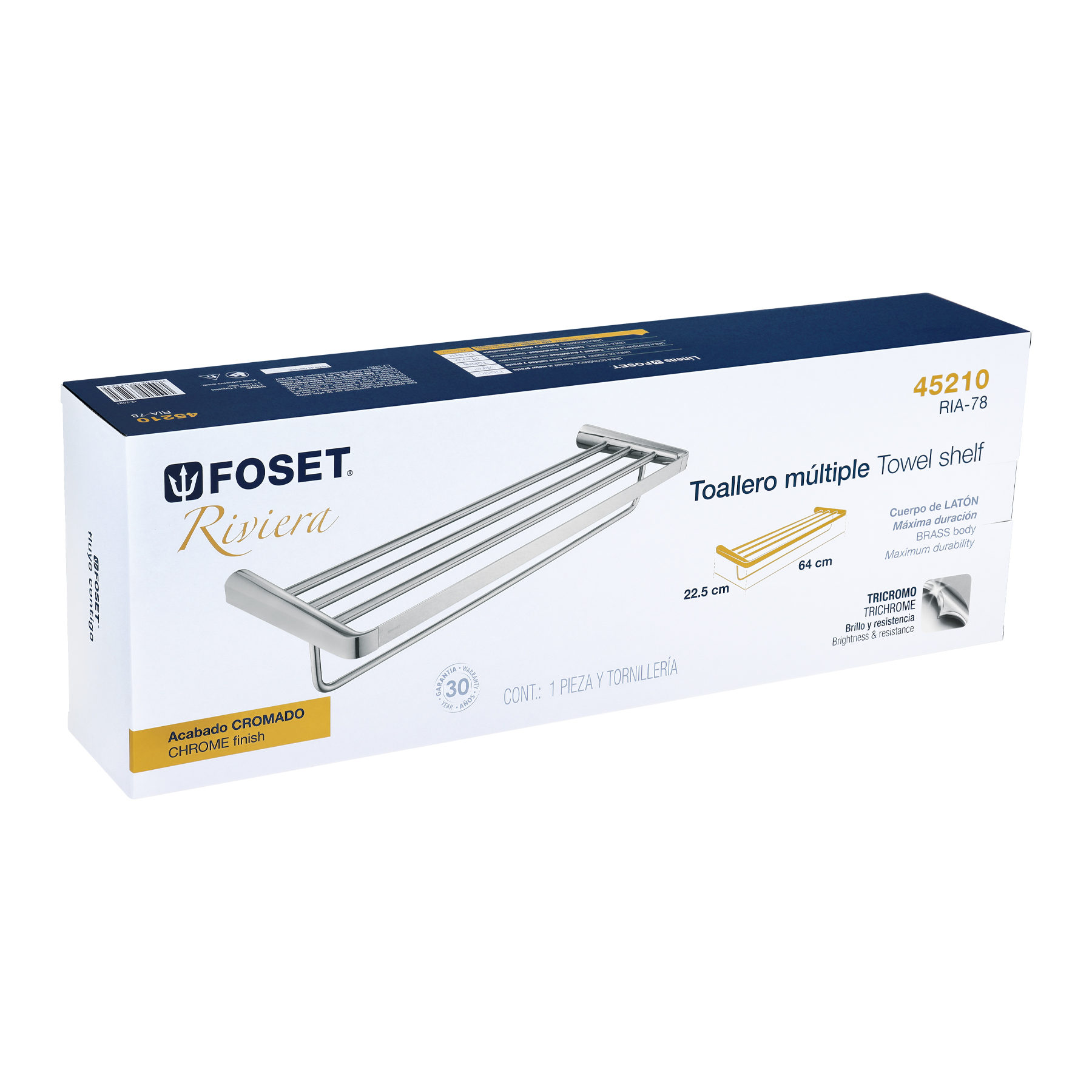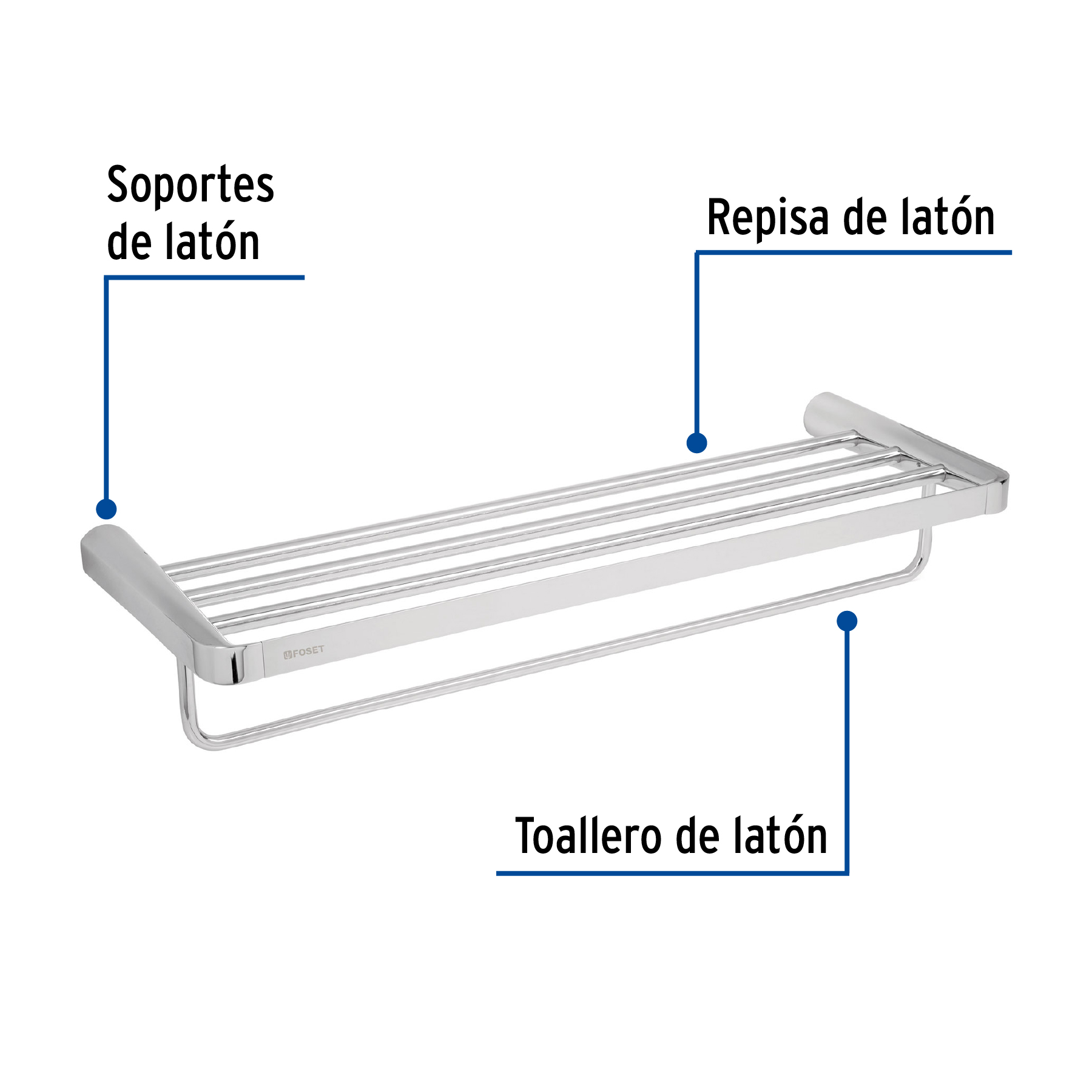 Repisa de latón portatoalla en acabado cromo, Foset Riviera
