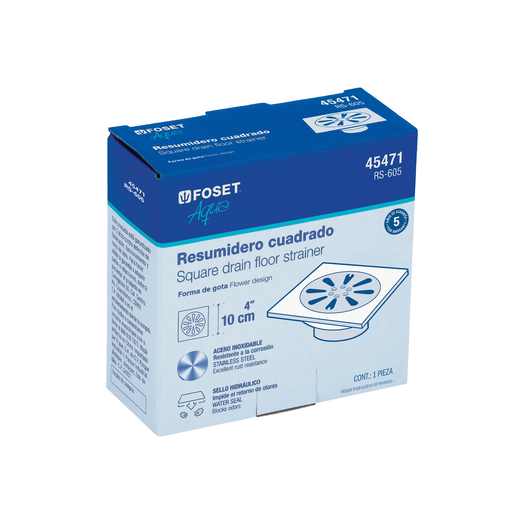 Resumidero cuadrado 4′ x 4′, acero inoxidable, gota, AQUA
