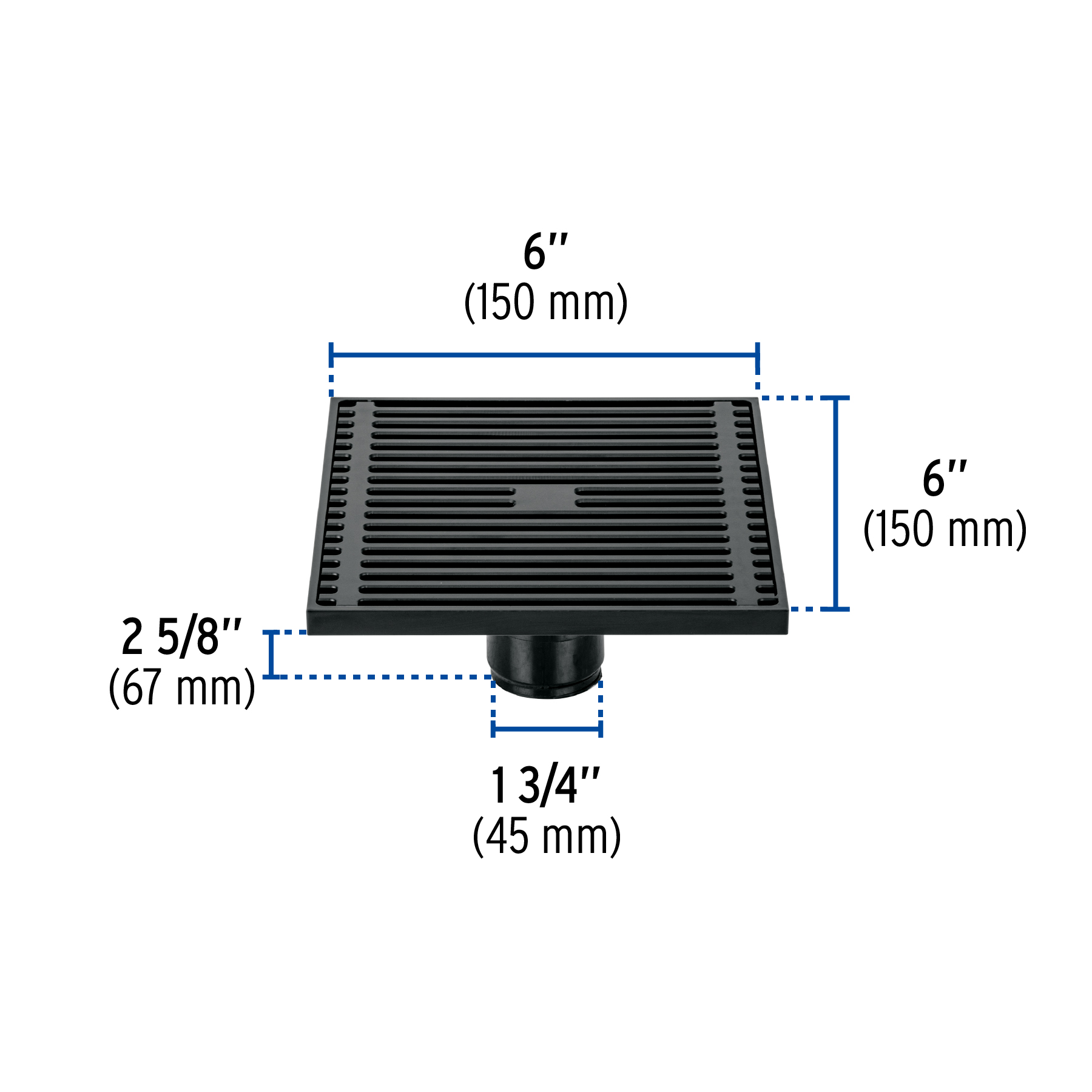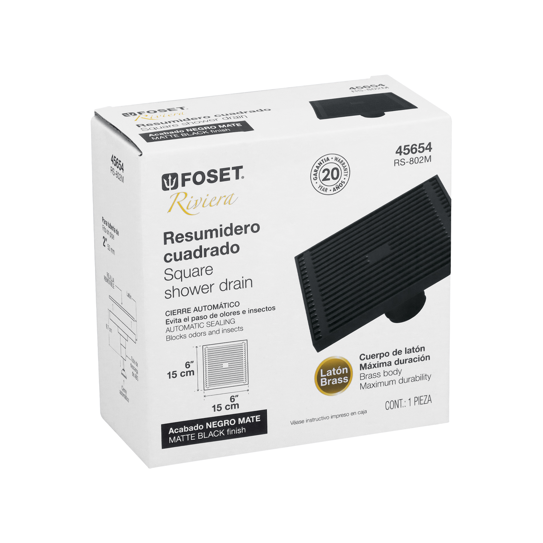 Resumidero cuadrado 6 x 6′, latón, negro, FOSET RIVIERA