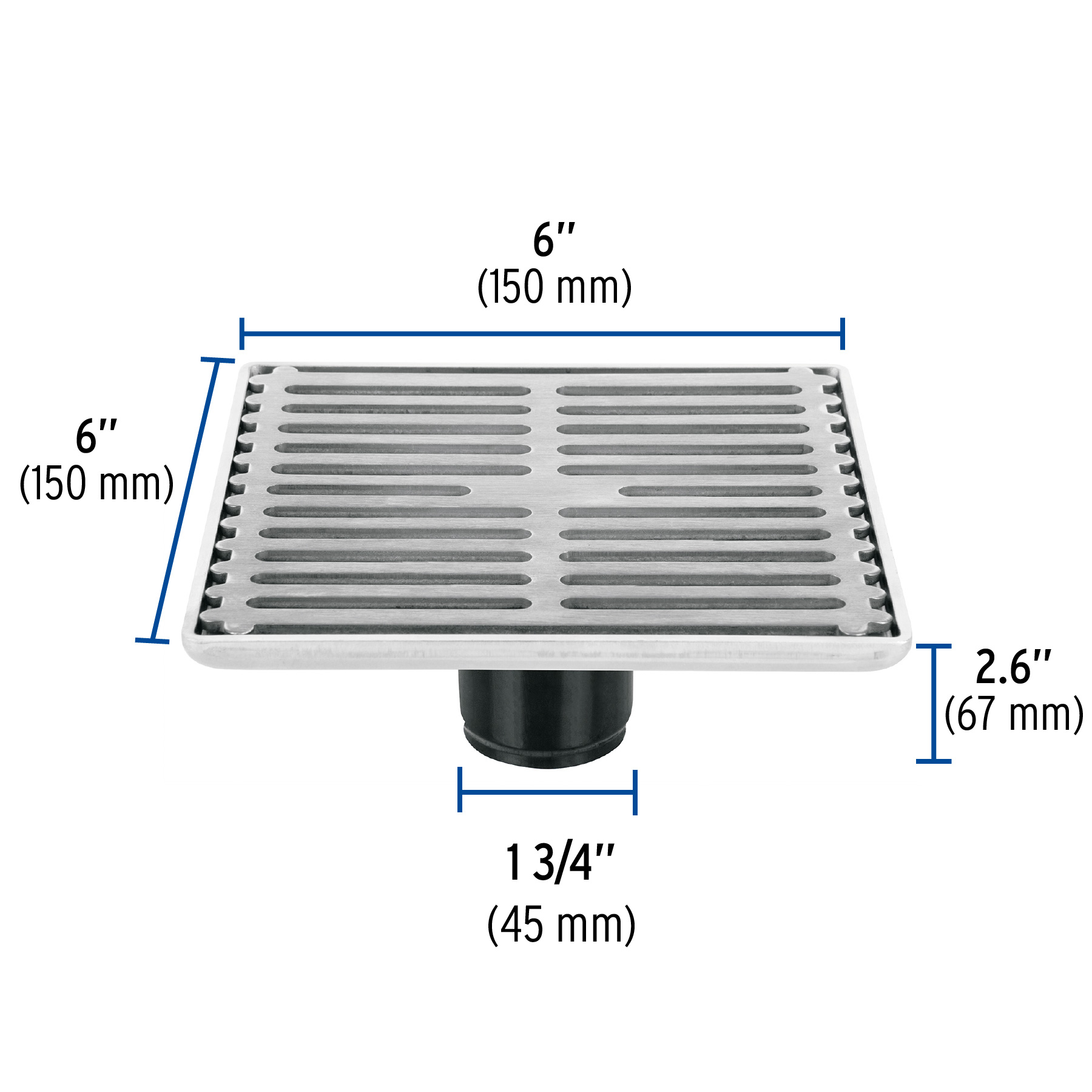 Resumidero cuadrado 6′ x 6′, acero inoxidable , AQUA