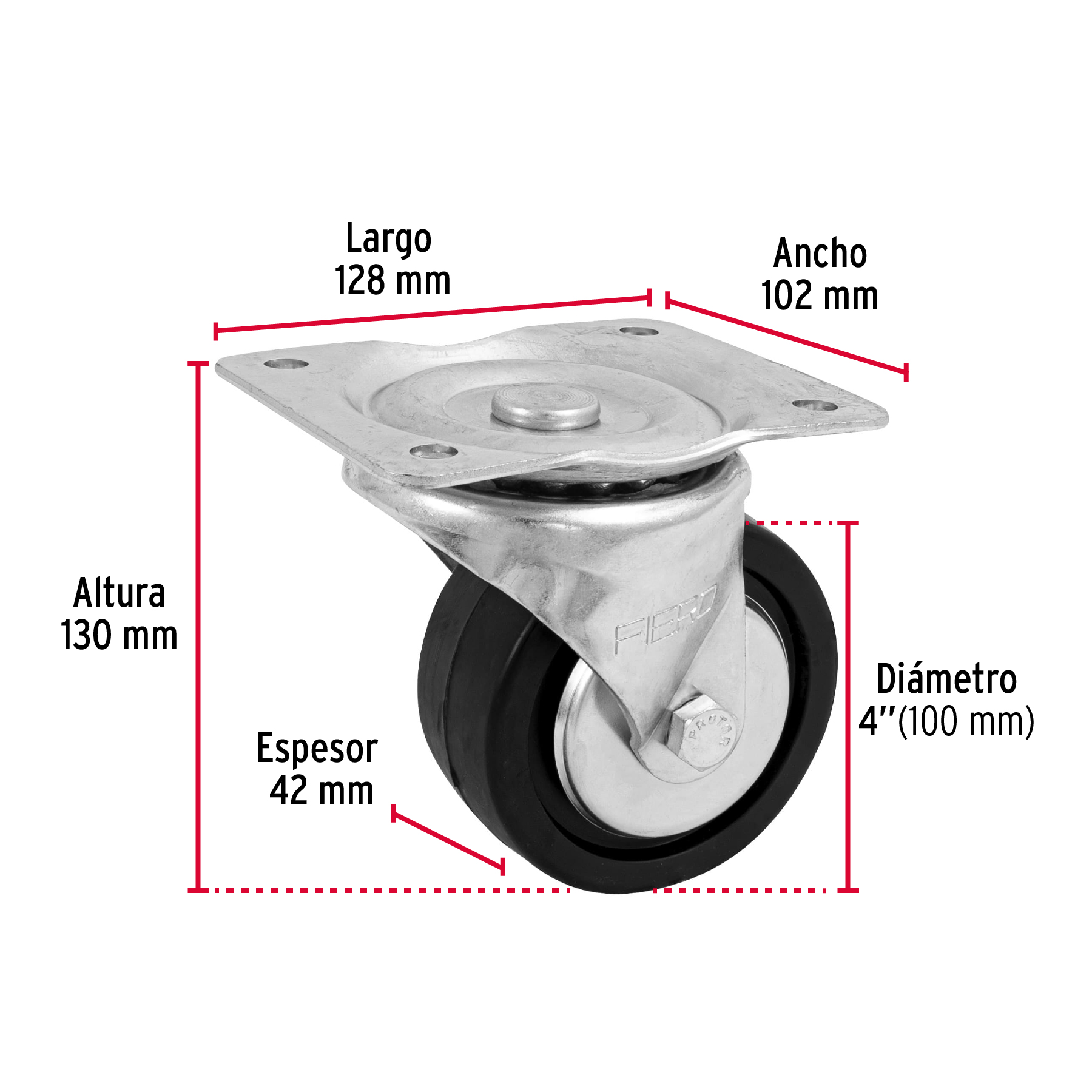 Sé el primero en valorar “Rodaja hule 4′, placa giratoria c/balero, carga 100kg, FIERO” Cancelar la respuesta