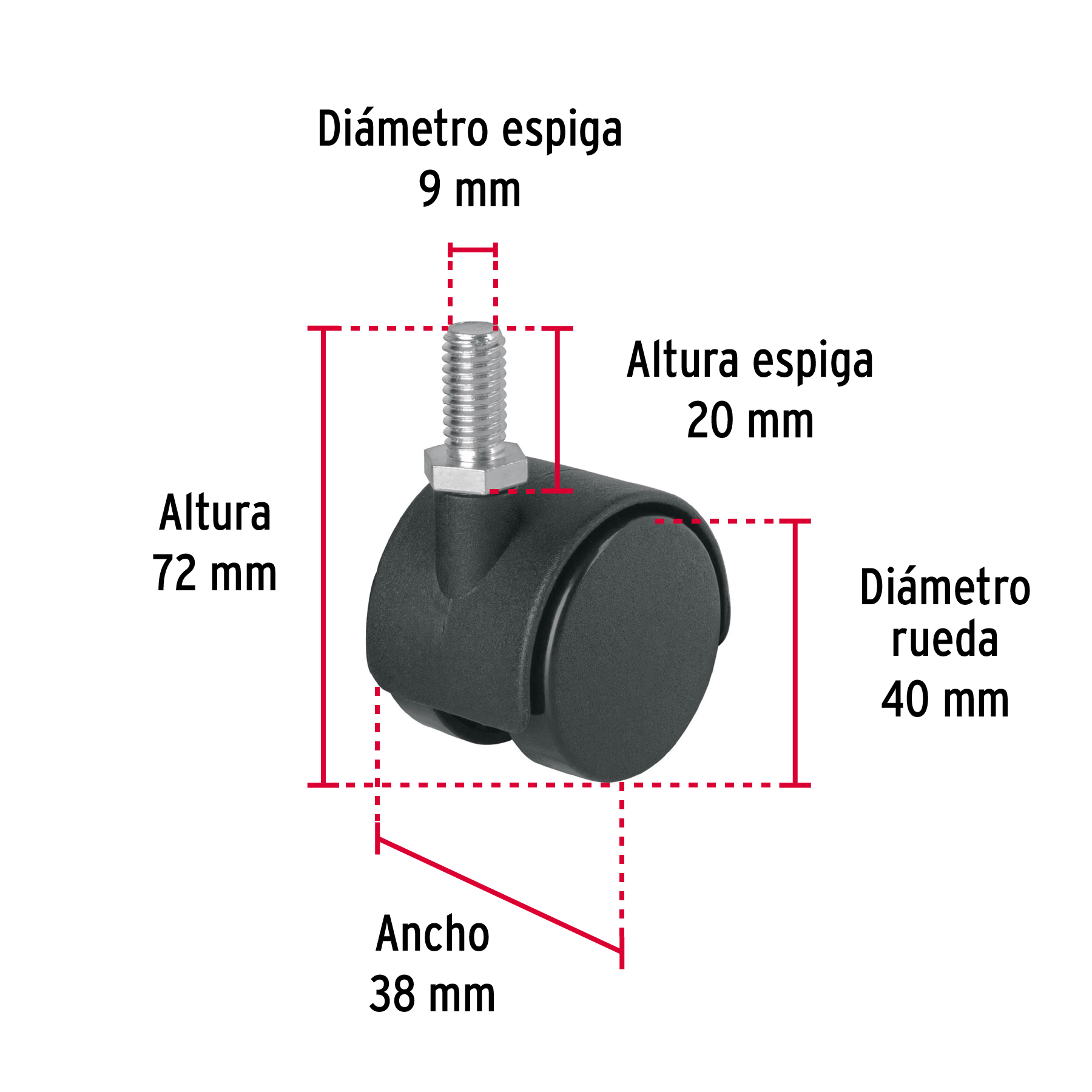 Rodaja tipo yoyo de 40 mm con espiga roscada, FIERO