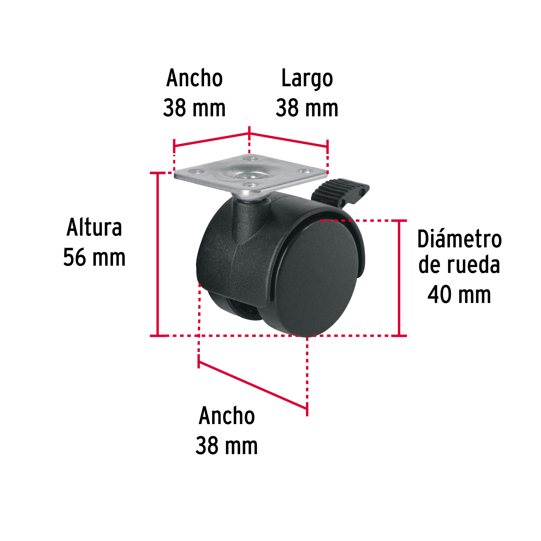 Rodaja tipo yoyo de 40 mm con placa, con freno, FIERO