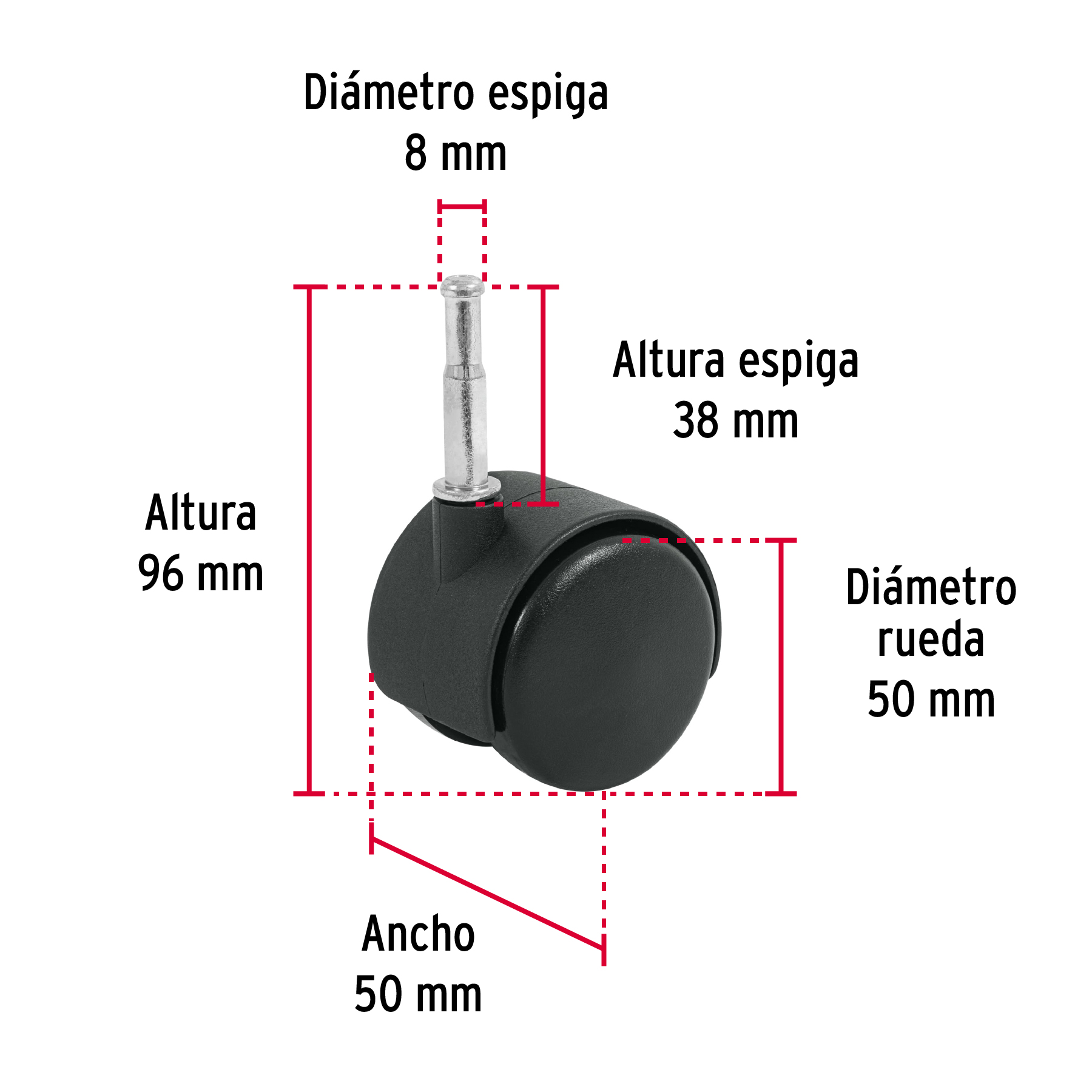 Rodaja tipo yoyo de 50 mm con espiga para madera, FIERO