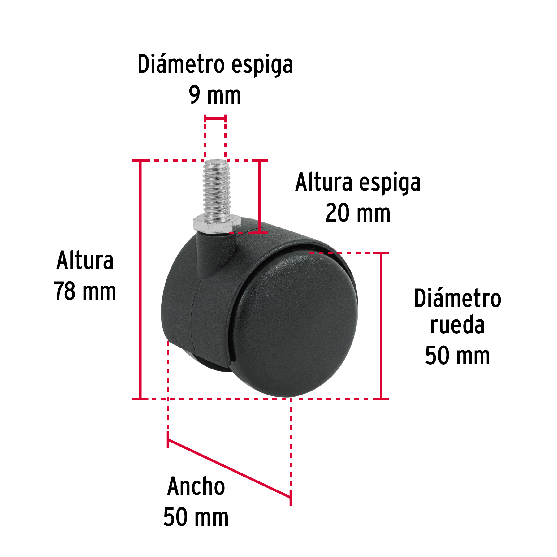 Rodaja tipo yoyo de 50 mm con espiga roscada, FIERO