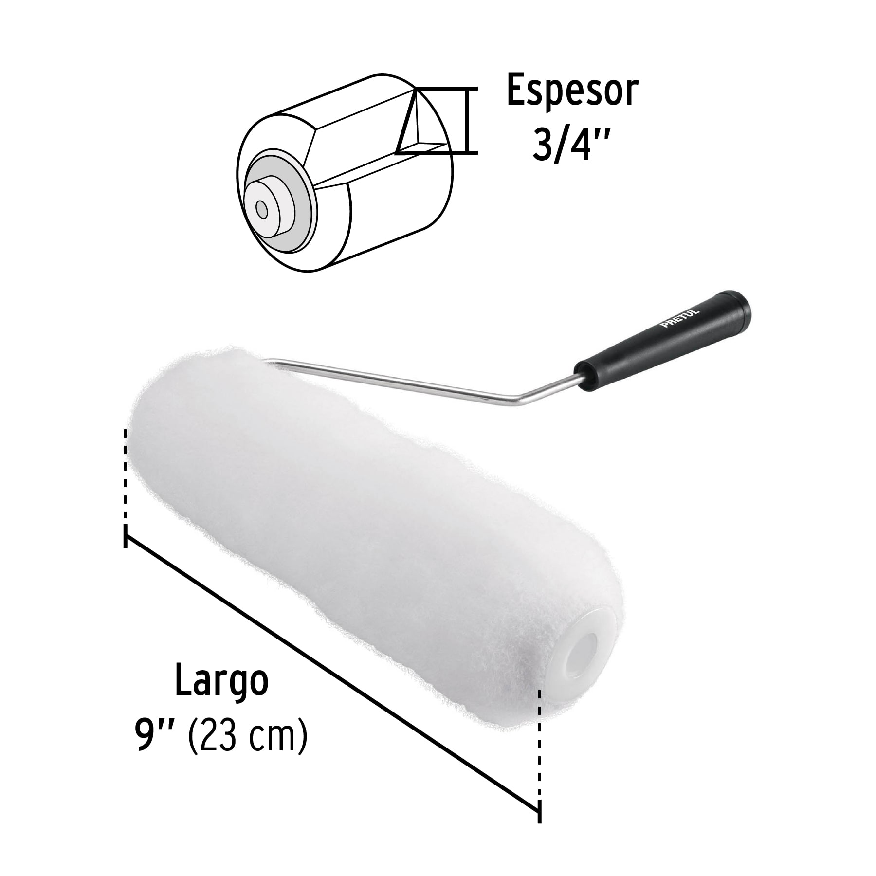 Rodillo para pintar, 9 x 3/4′, superficies rugosas, Pretul