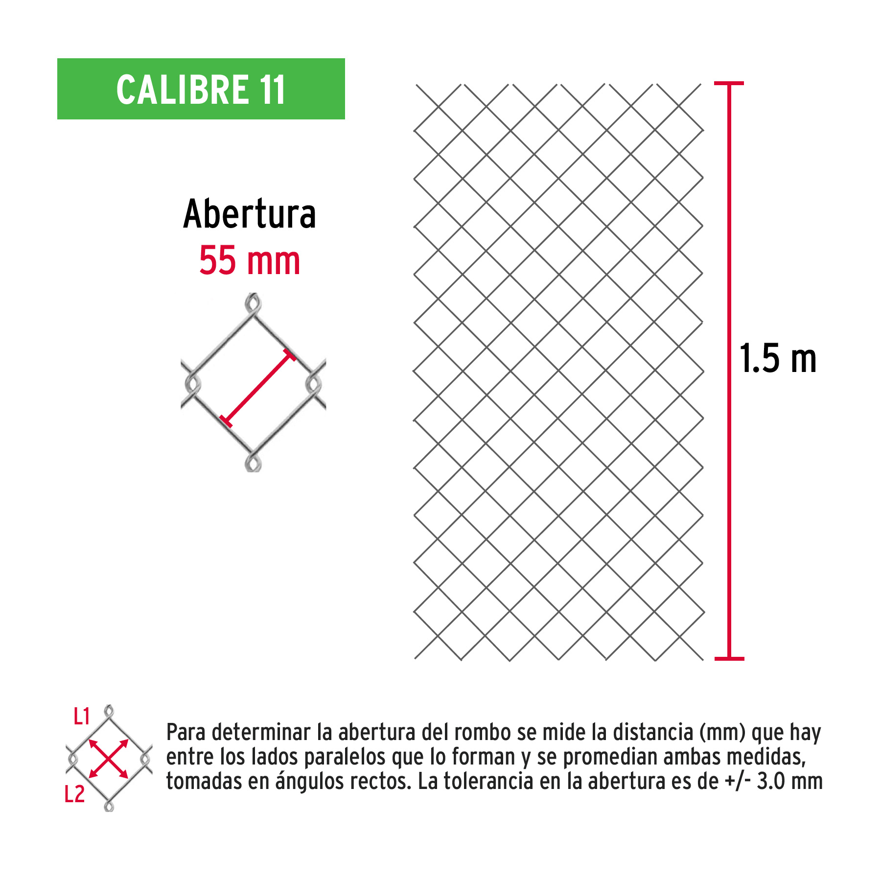 Rollo malla ciclónica cal.11, 1.5x20m, abertura 55mm, 57kg