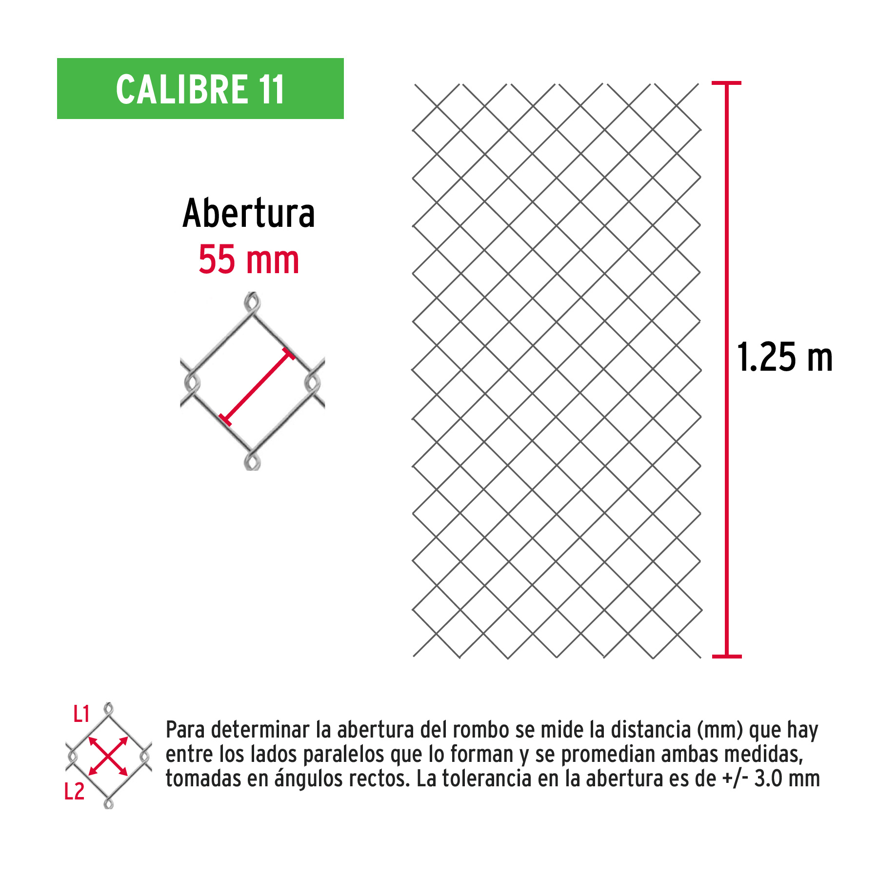 Sé el primero en valorar “Rollo malla ciclónica cal.11, 1.25x20m, abertura 55mm, 53kg”