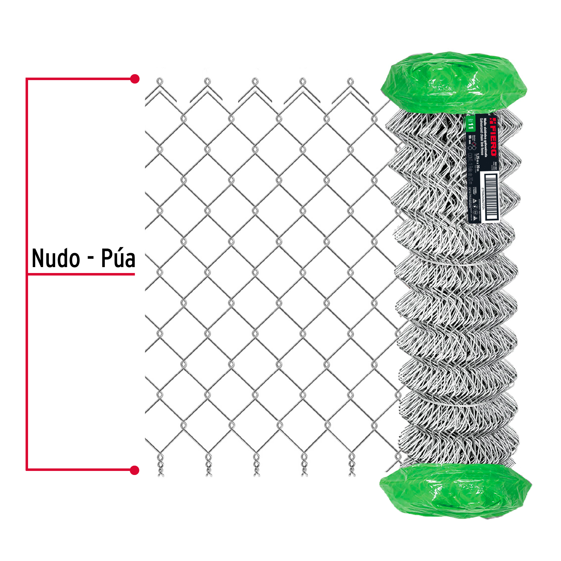 Rollo malla ciclónica cal.11, 1.25x20m, abertura 55mm, 53kg
