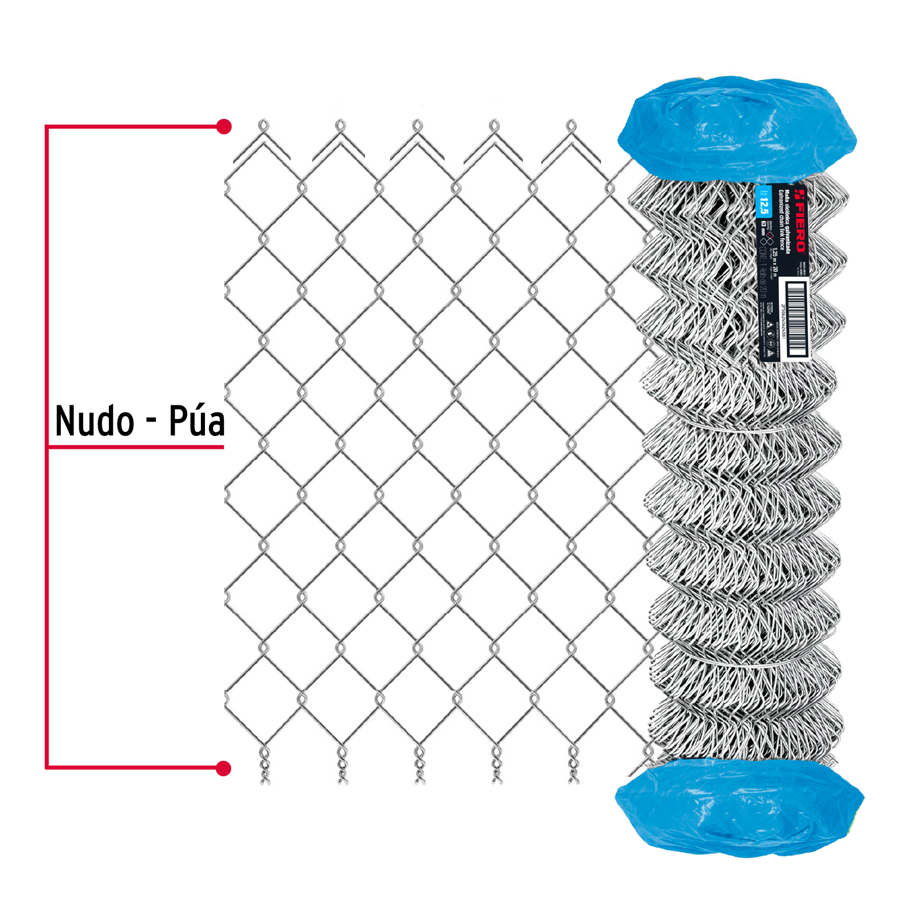 Rollo malla ciclónica cal.12.5, 1.25x20m, abertura 63mm 28kg