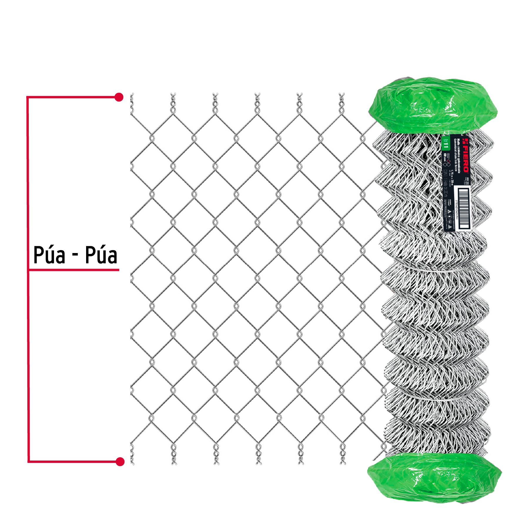 Rollo malla ciclónica cal.11, 1.75x20m, abertura 69mm, 59kg