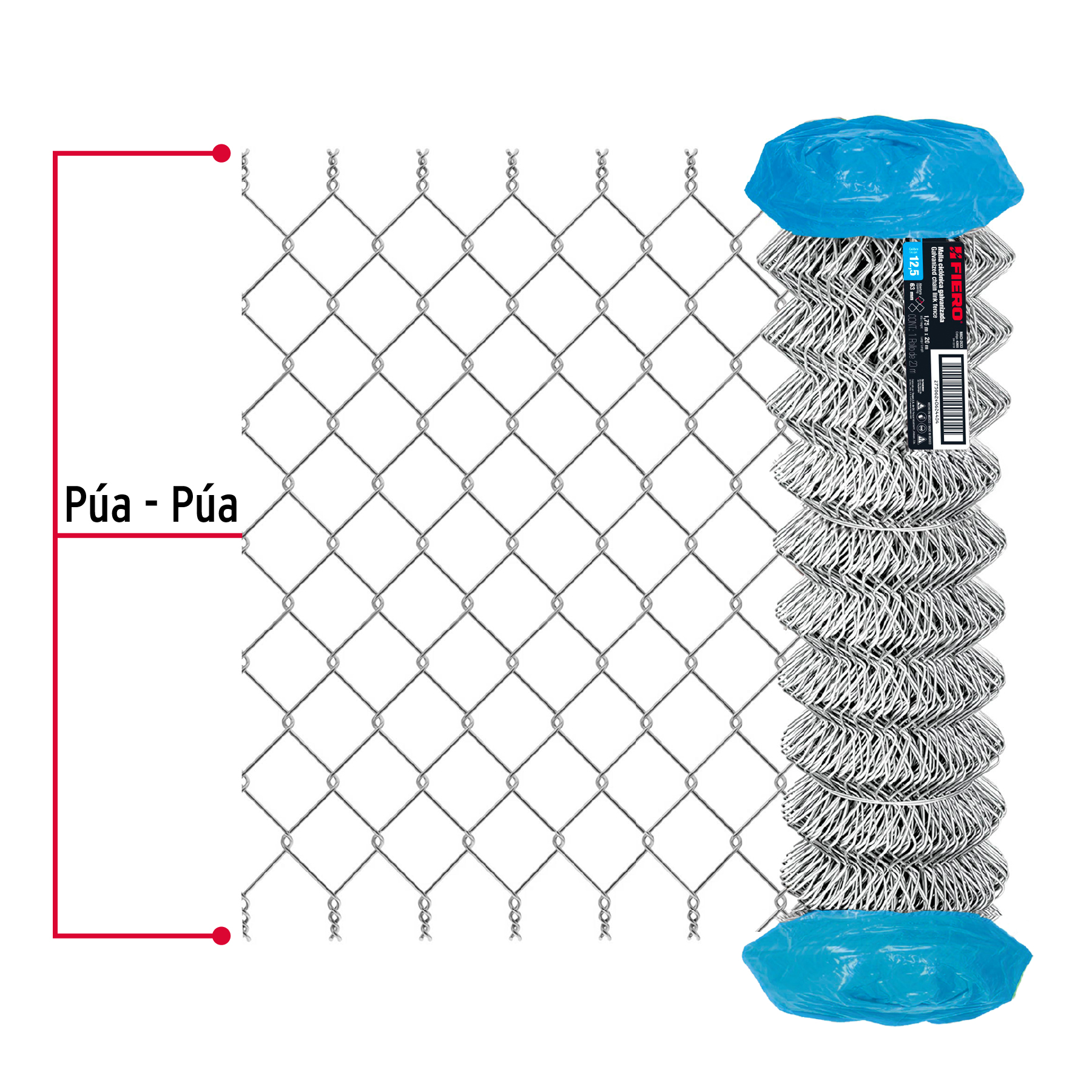 Rollo malla ciclónica cal.12.5, 1.75x20m, abertura 63mm 38kg