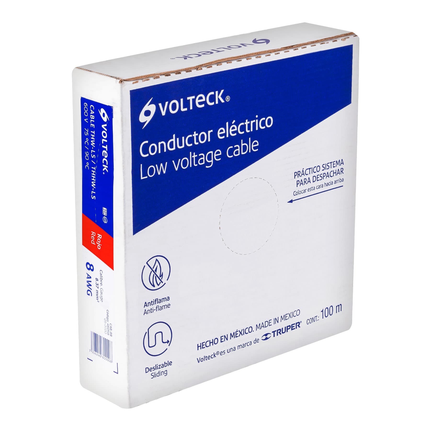 Rollo de 100 m de cable THHW-LS 8 AWG rojo, Volteck