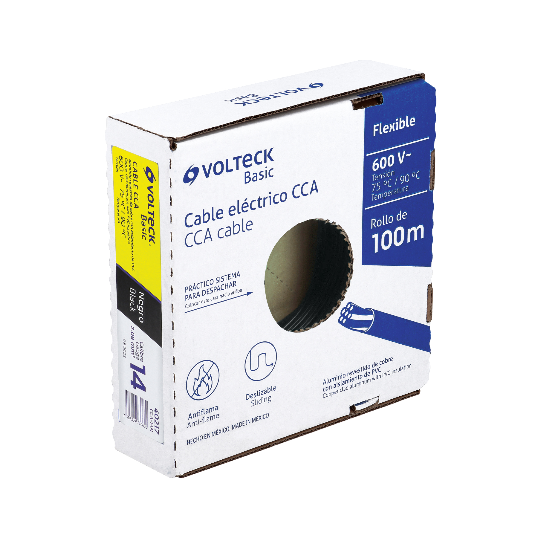 Rollo de 100 metros de cable THW CCA 14 AWG negro, Basic