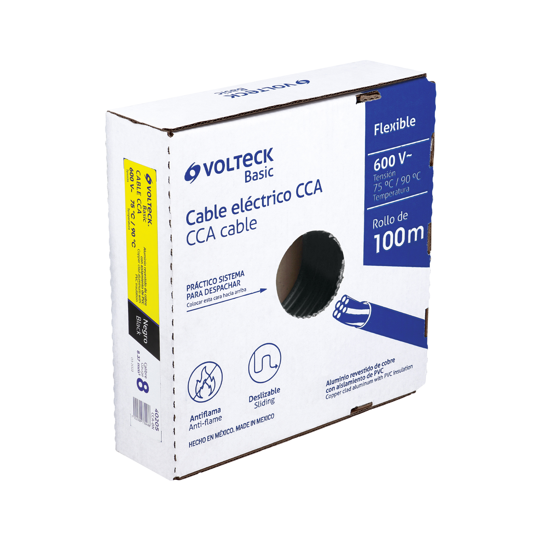 Rollo de 100 metros de cable THW CCA 8 AWG negro, Basic