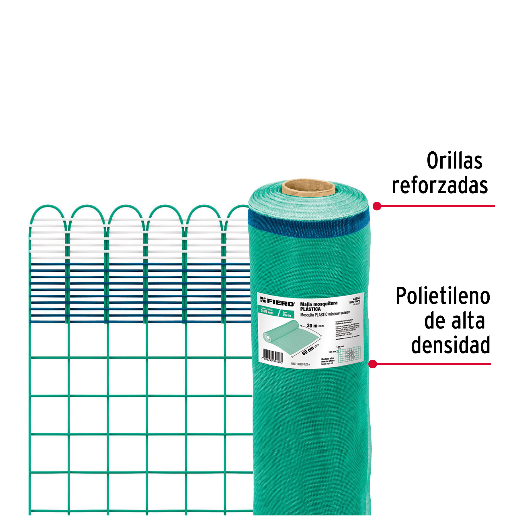 Rollo de 30 m x 0.6 m de malla mosquitera plástica verde
