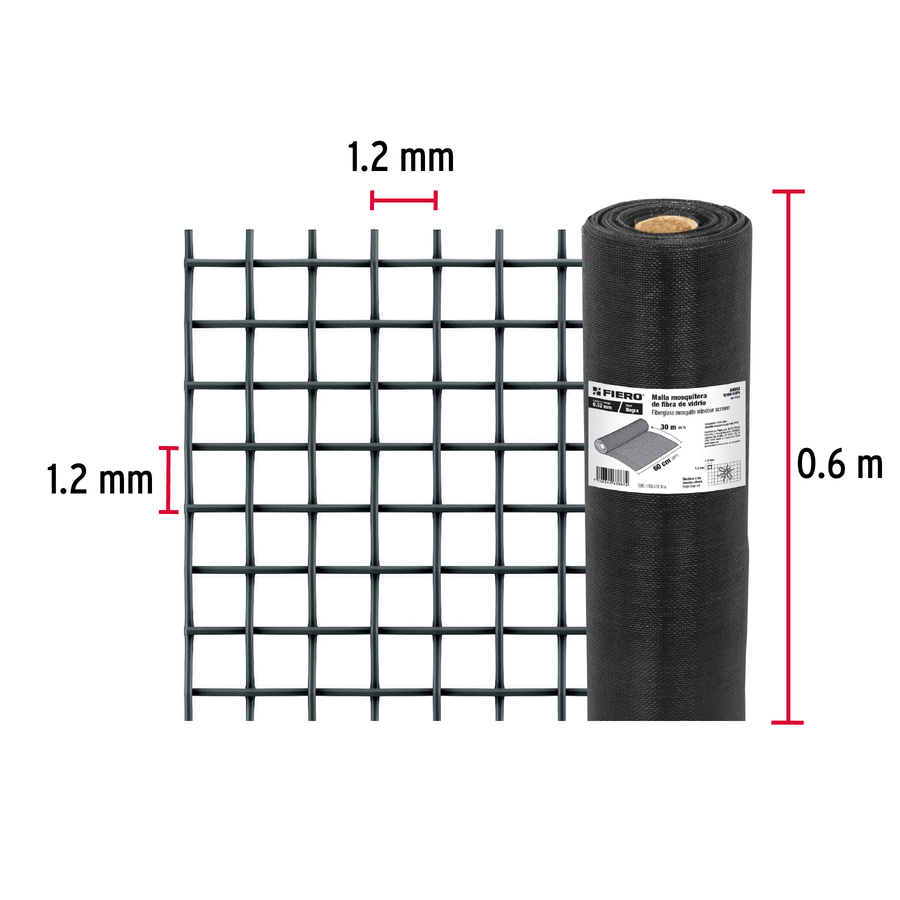 Rollo de 30 m x 0.6 m malla mosquitera fibra de vidrio negra