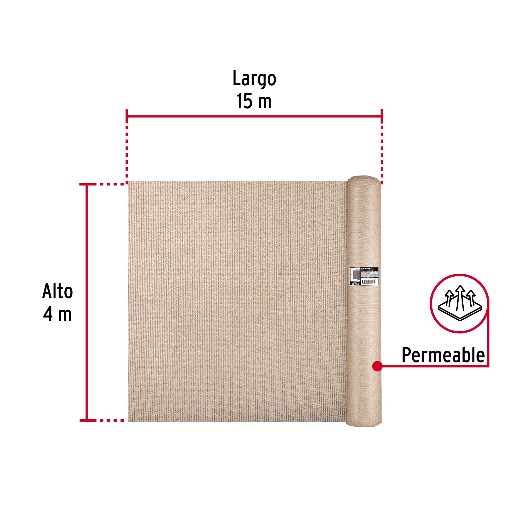 Rollo de malla sombra raschel 90% de 15m x 4m, beige, FIERO