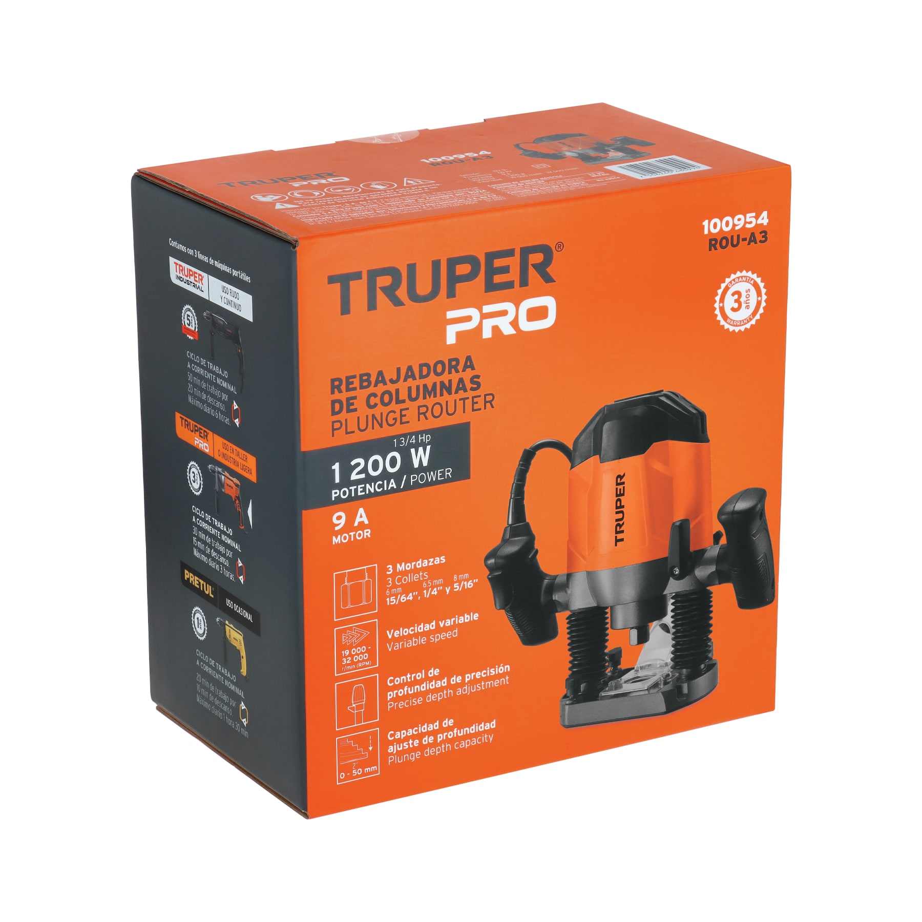 Router (Rebajadora) 1200W, 1-3/4 HP, TRUPER PRO