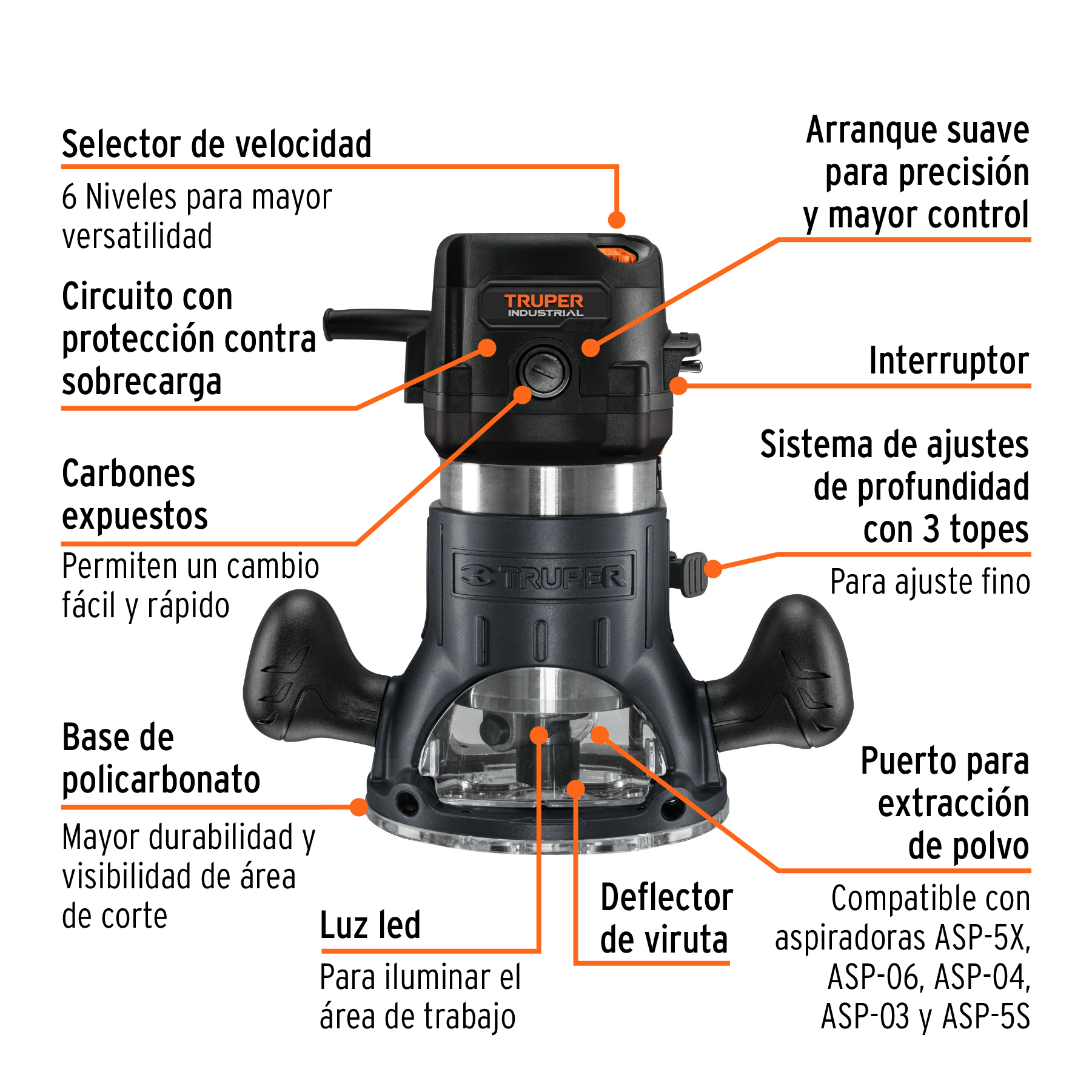 Router (Rebajadora) 1440W, 2 HP, TRUPER INDUSTRIAL