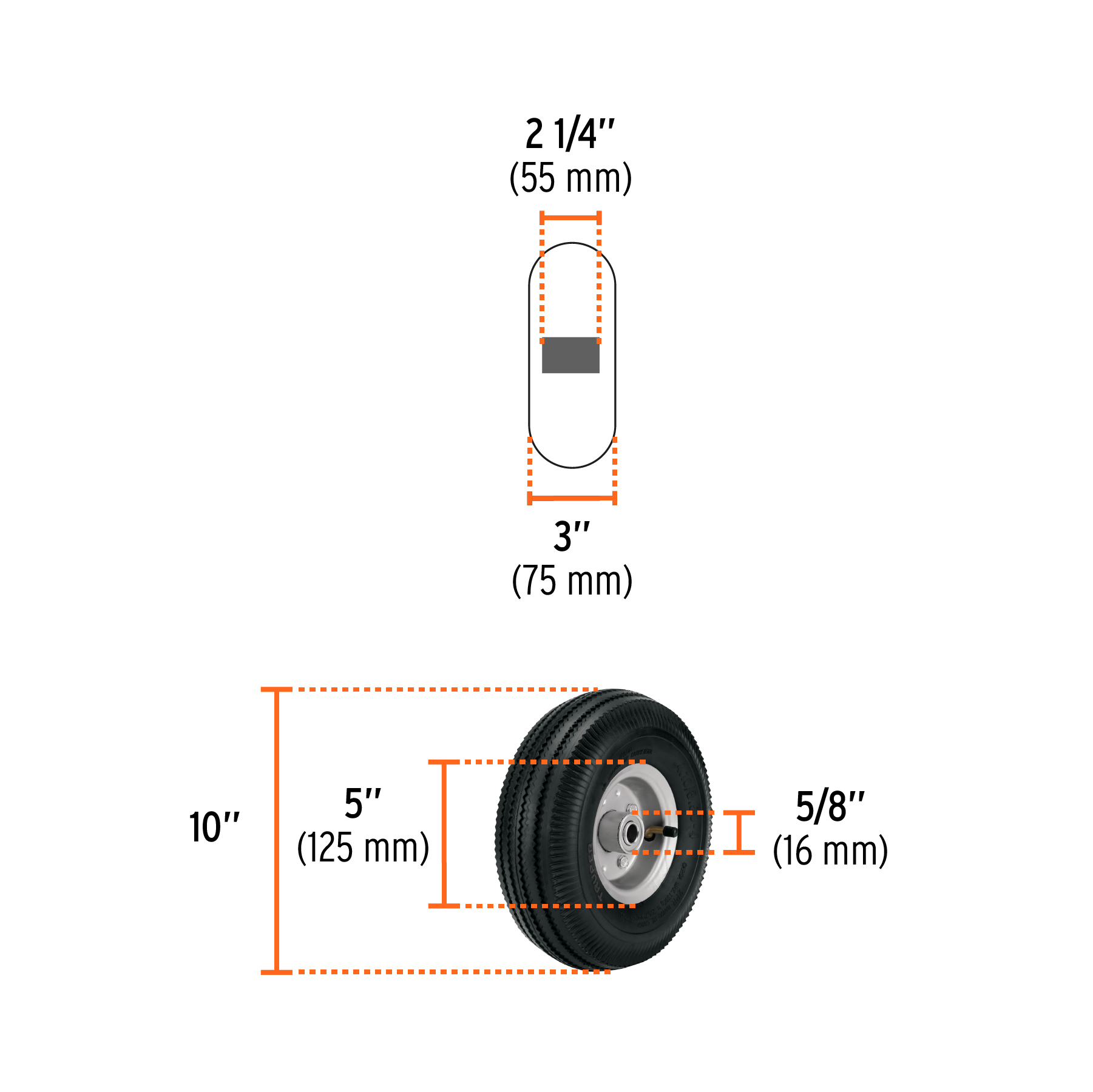 Rueda neumática 10′ para eje central, Truper