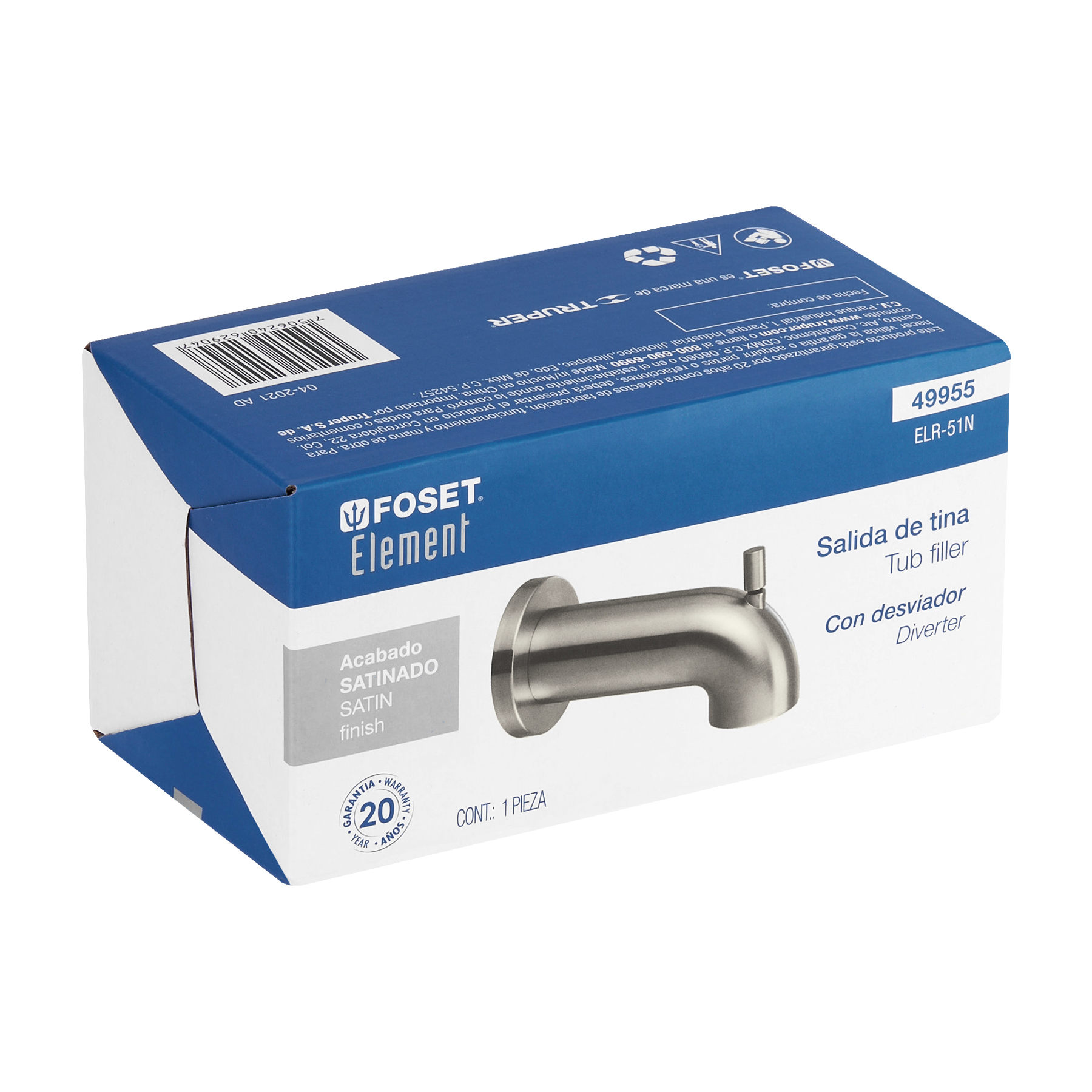 Salida de tina con desviador, satín, FOSET ELEMENT