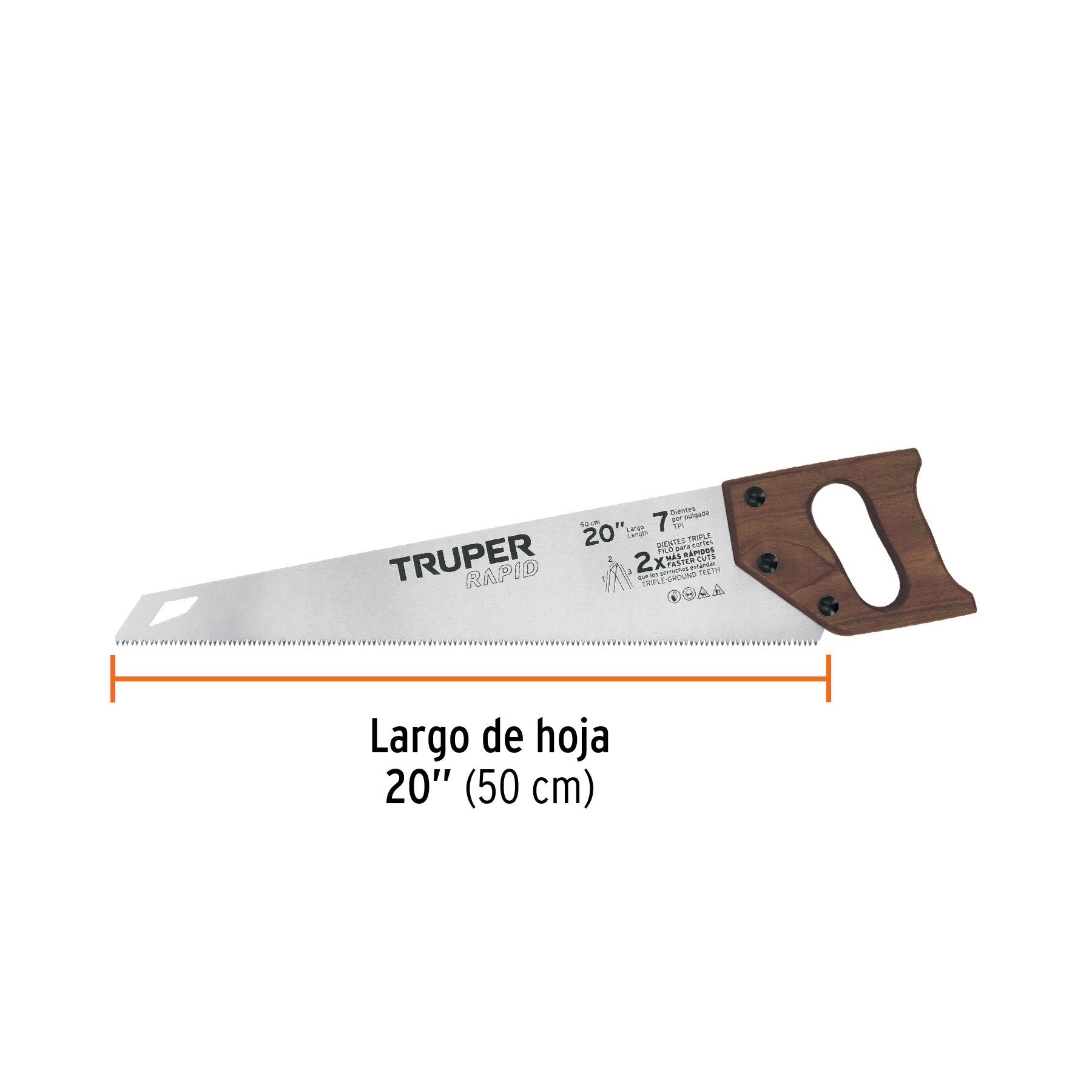 Serrucho Rapid 20′, 7 DPP, mango de madera, Truper