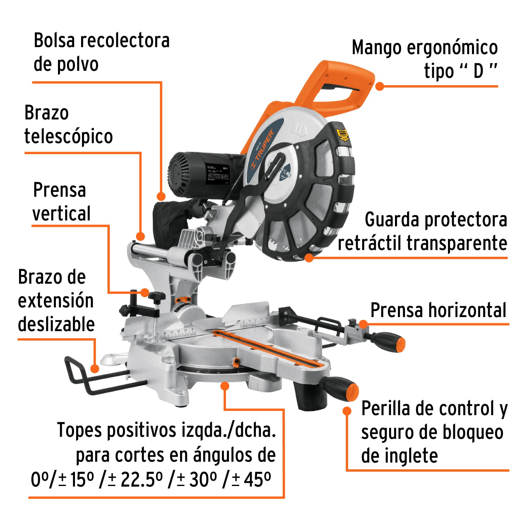 Sierra de inglete 12′ de 2000 W telescópica compuesta