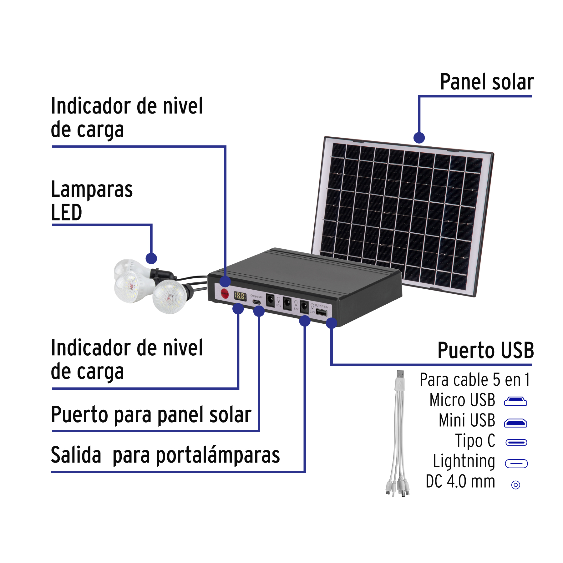 Sistema de iluminación Solar 6 W con 3 lámparas LED, VOLTECK