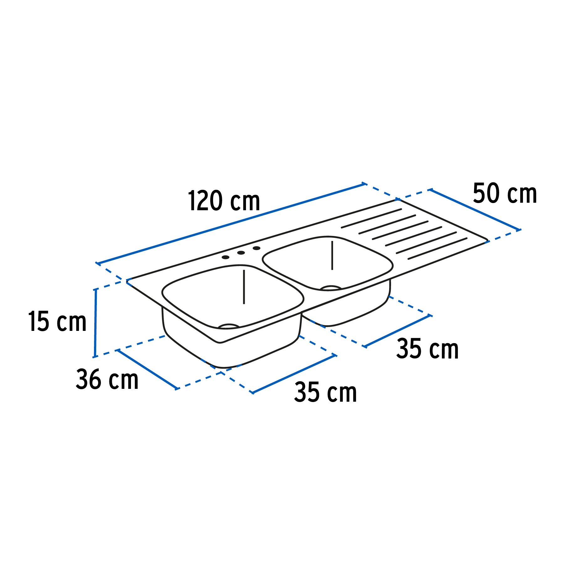 Tarja de empotrar 120 x 50 cm doble tina izquierda, FOSET