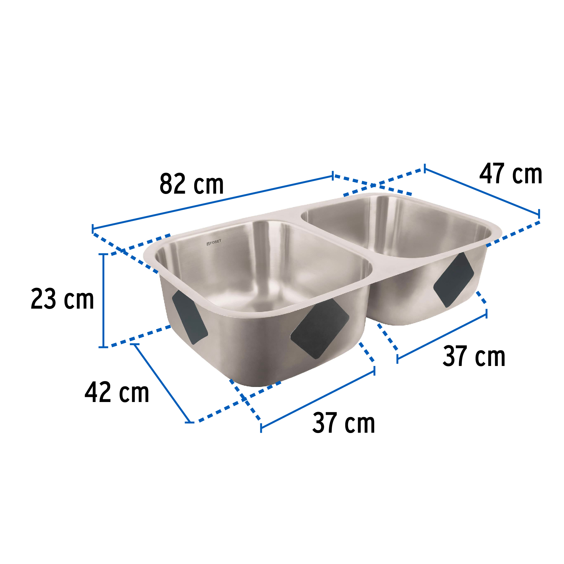 Tarja de submontar 82 x 47 x 23 cm doble tina, FOSET RIVIERA
