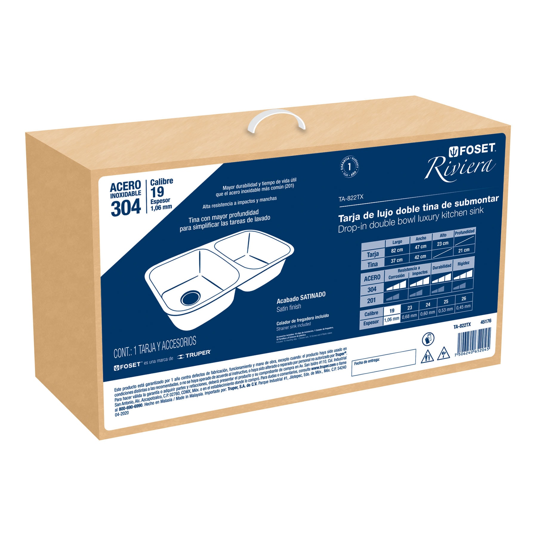 Sé el primero en valorar “Tarja de submontar 82 x 47 x 23 cm doble tina, FOSET RIVIERA” Cancelar la respuesta