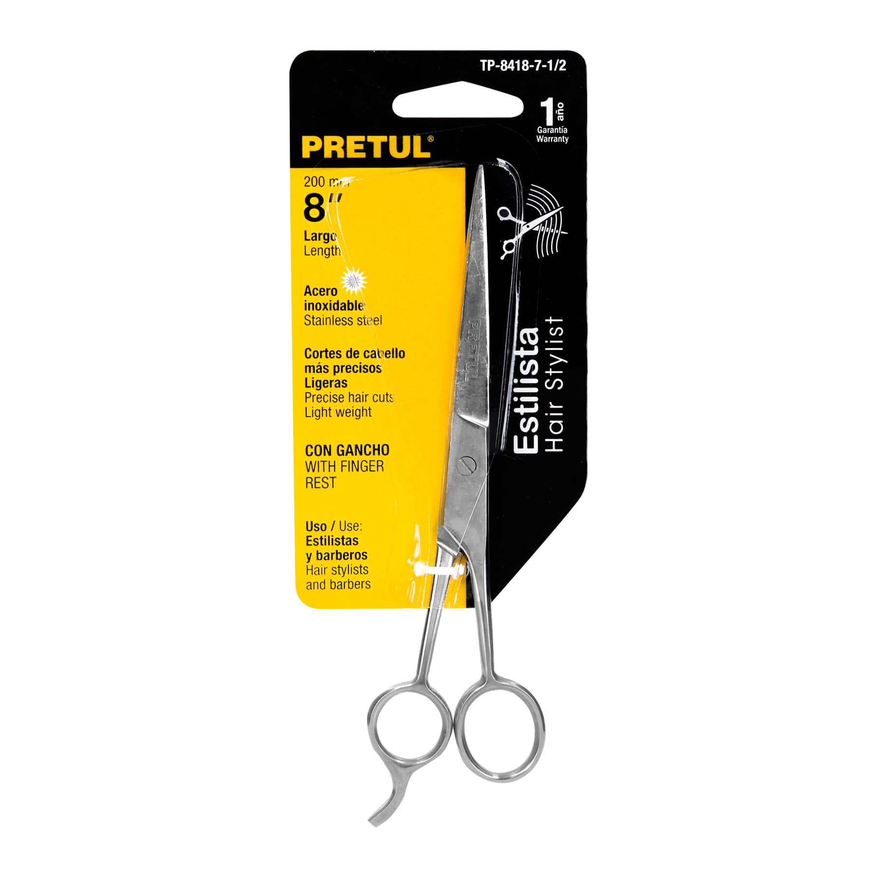 Tijera 7-1/2′ acero inox con gancho, para estilista, PRETUL