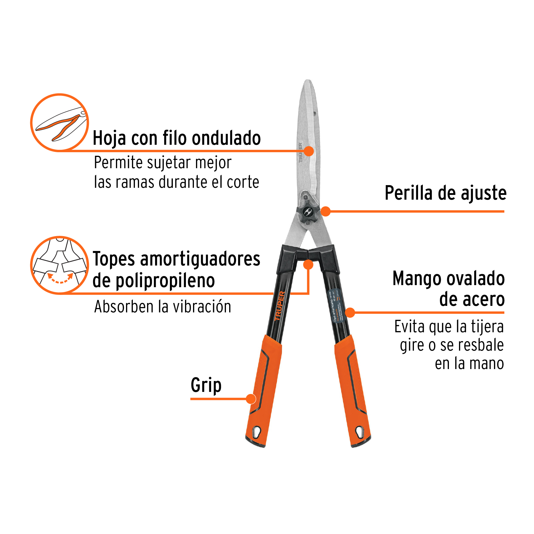 Sé el primero en valorar “Tijera poda 60 cm filo ondulado mango ovalado acero c/grip”