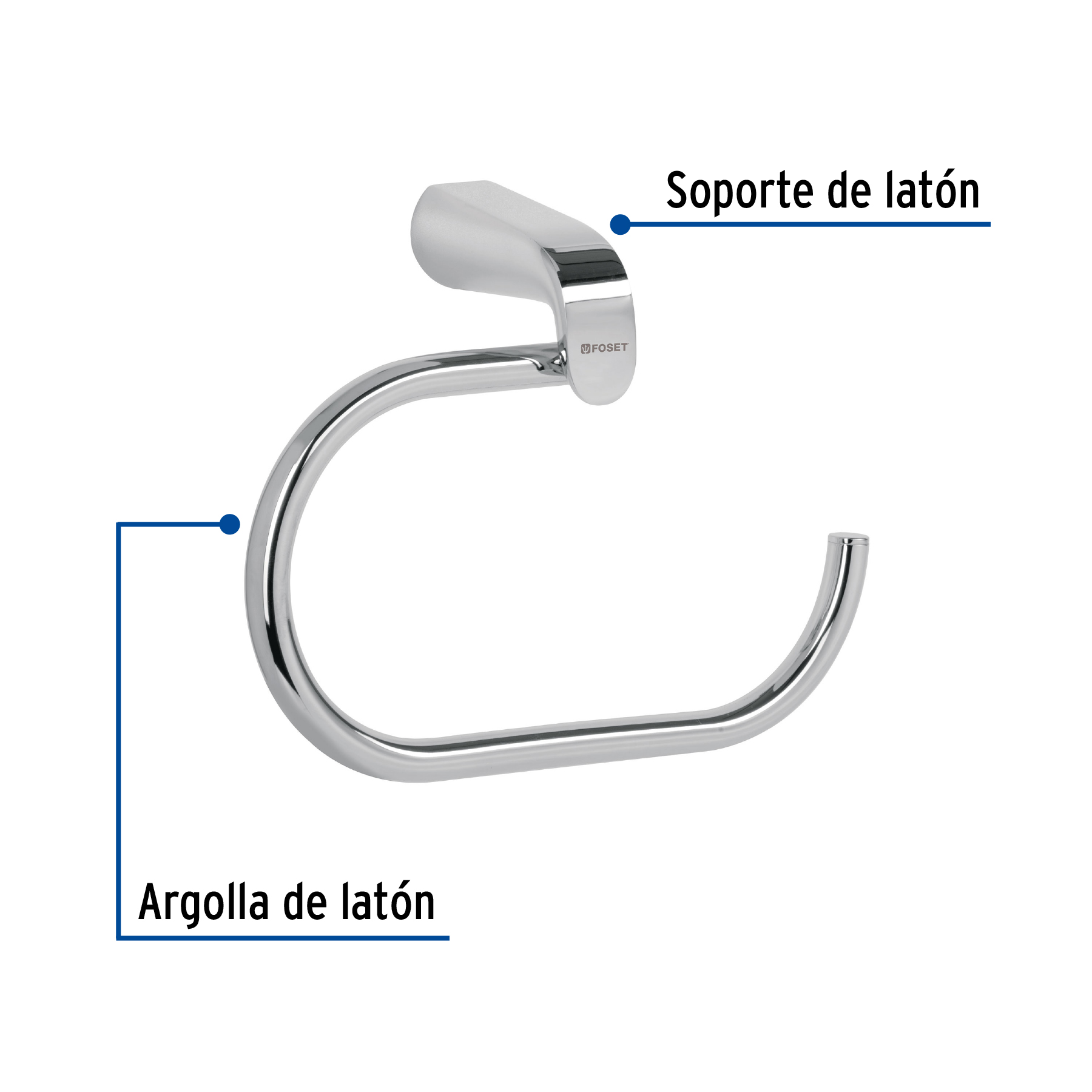Toallero argolla de latón en acabado cromo, Foset Riviera