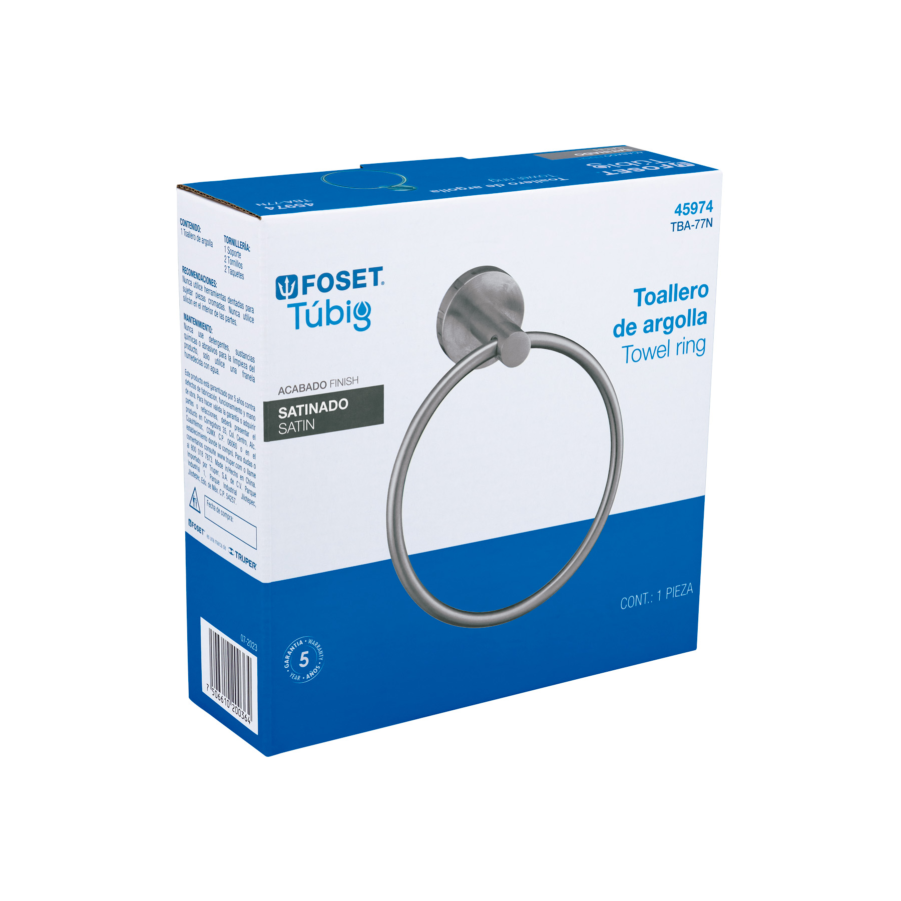 Toallero argolla metálico acabado satín, Foset Túbig