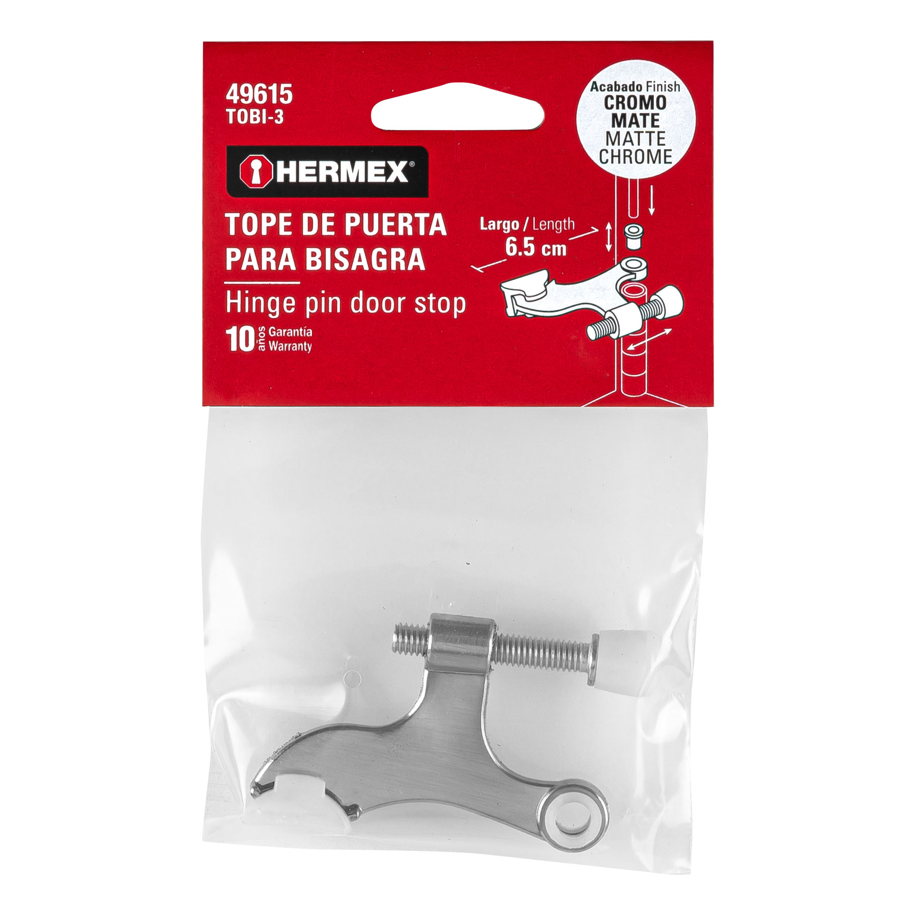 Tope de puerta para bisagra, acabado cromo mate, HERMEX
