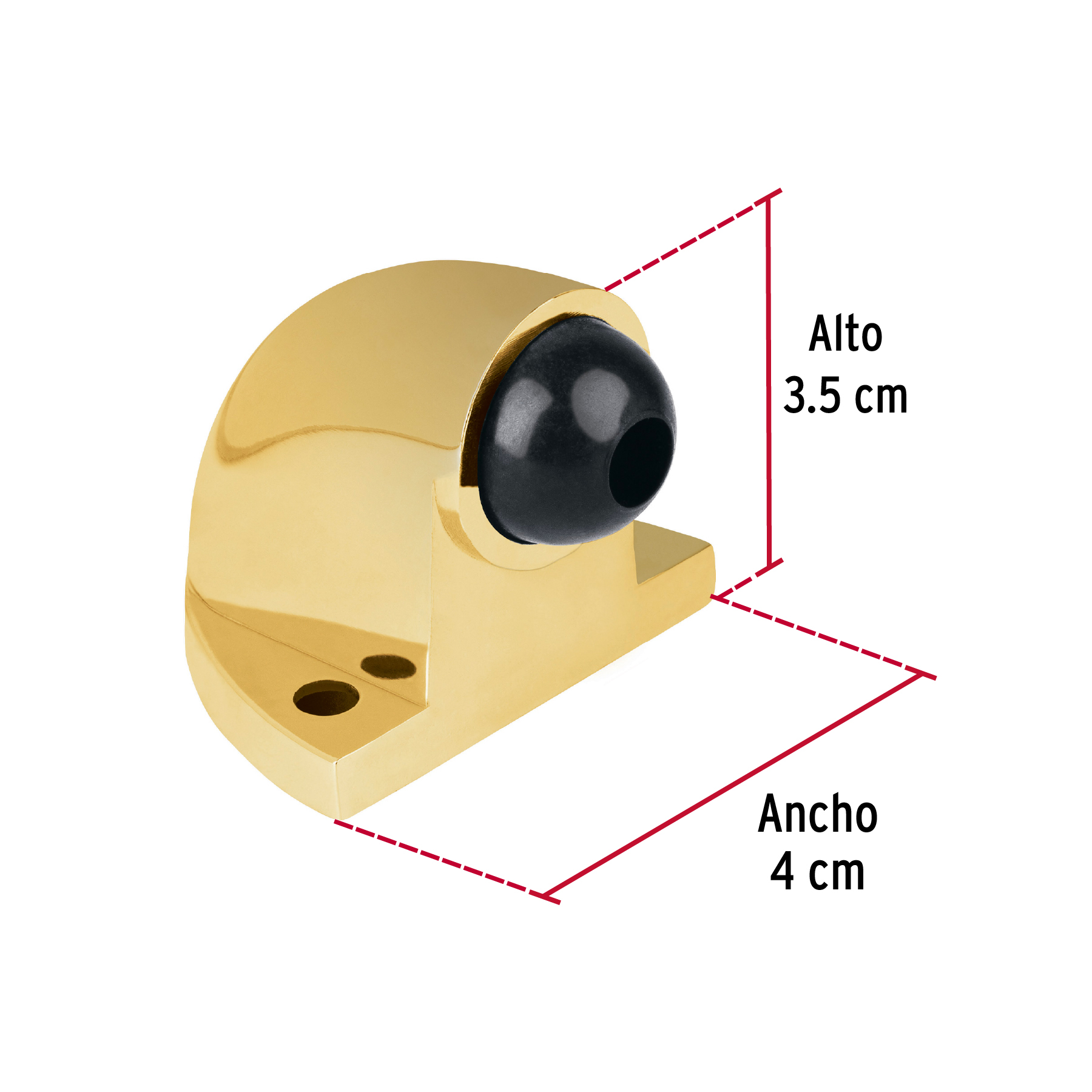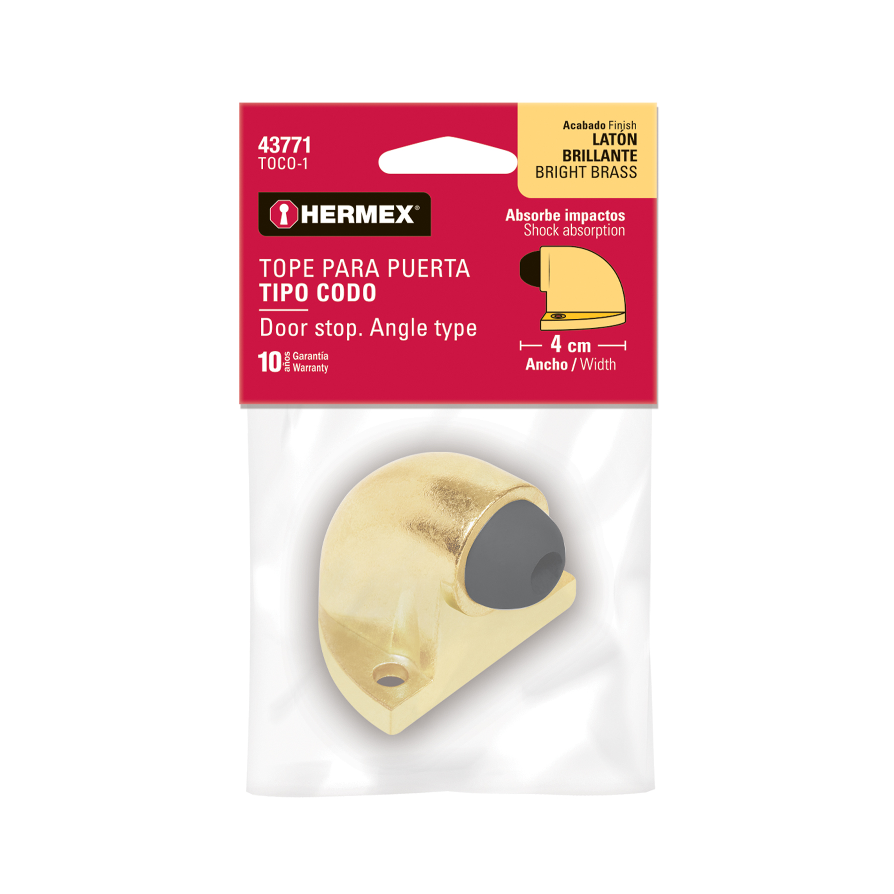 Tope tipo codo para puerta, acabado latón brillante, HERMEX