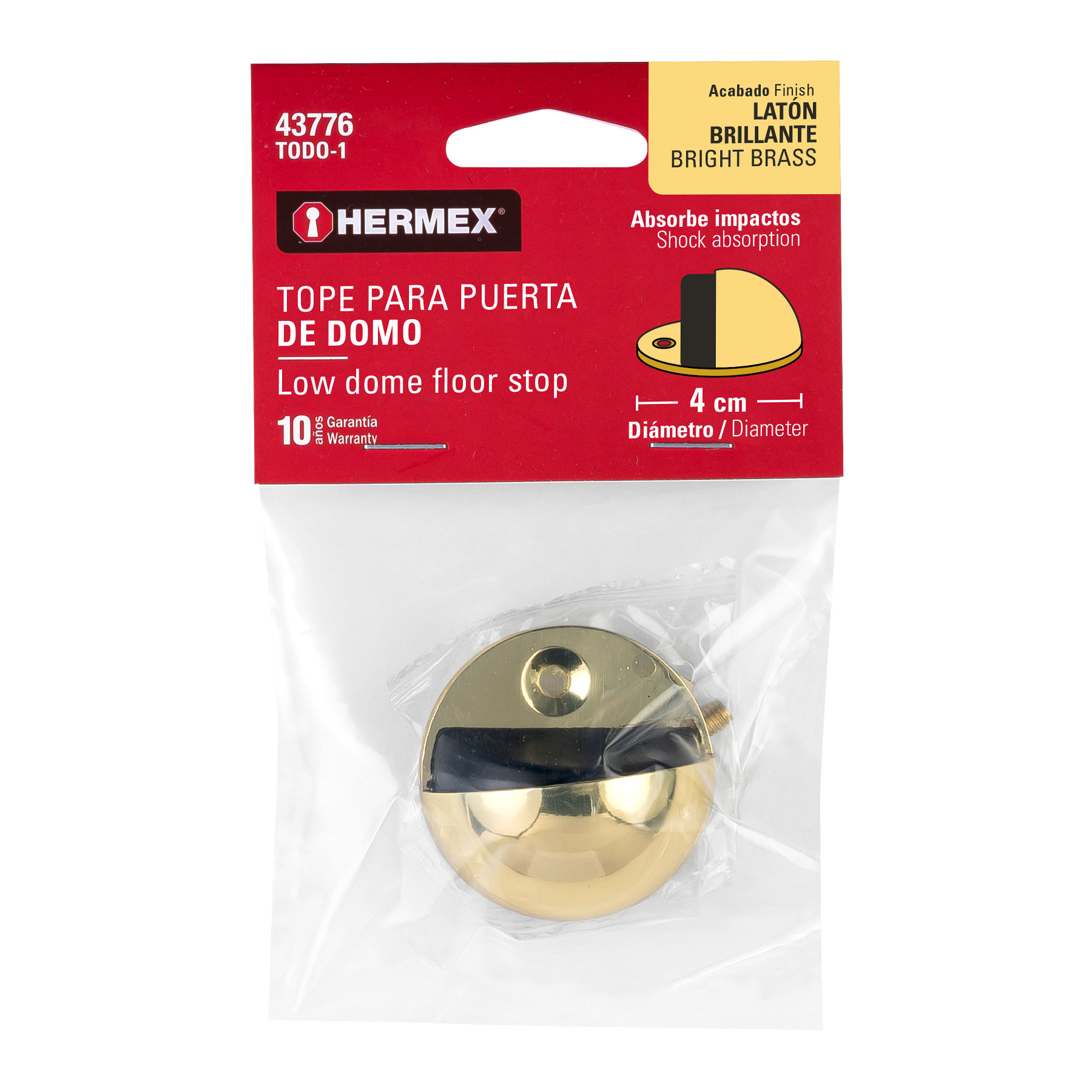 Tope tipo domo para puerta, acabado latón brillante, HERMEX