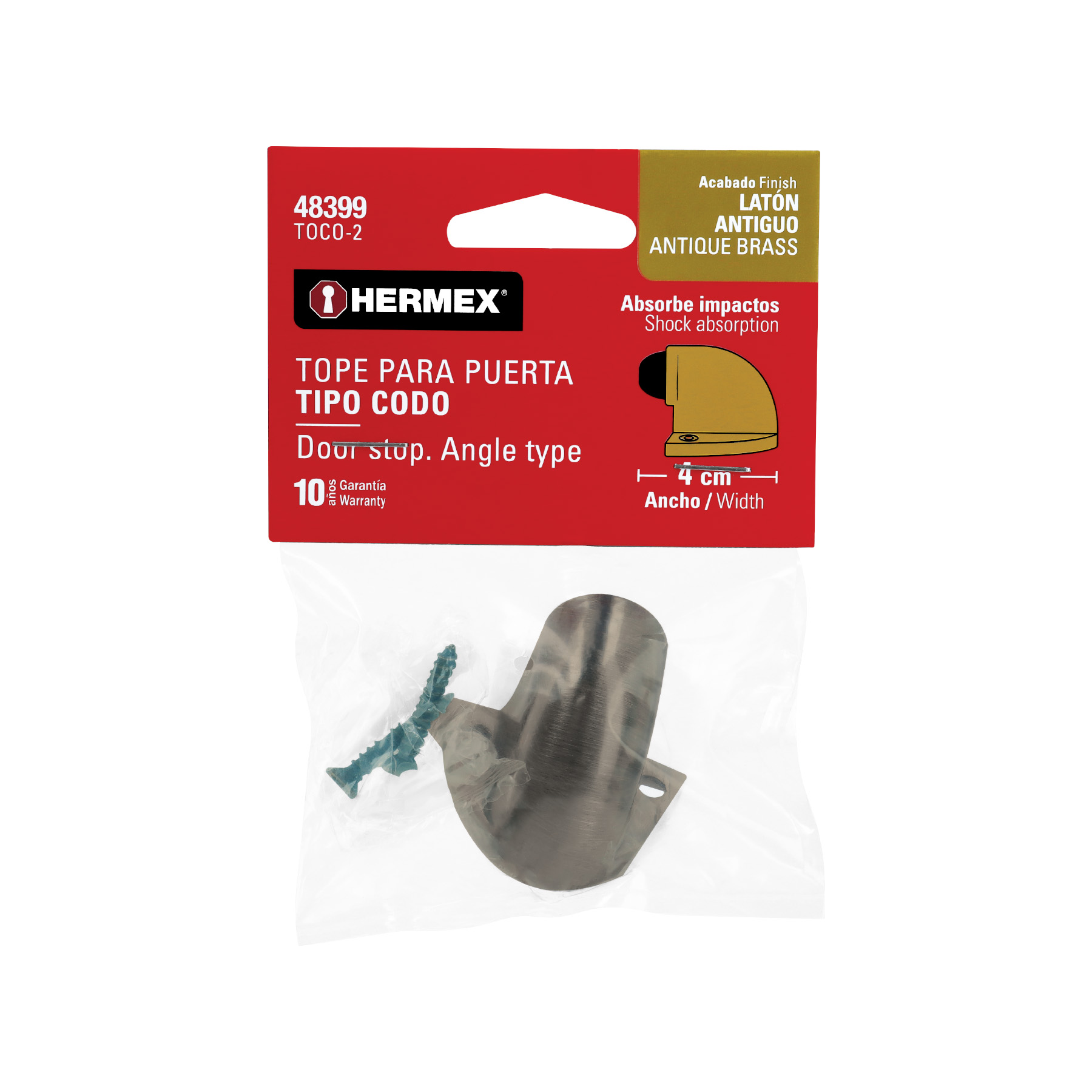 Tope tipo codo para puerta, acabado latón antiguo, HERMEX