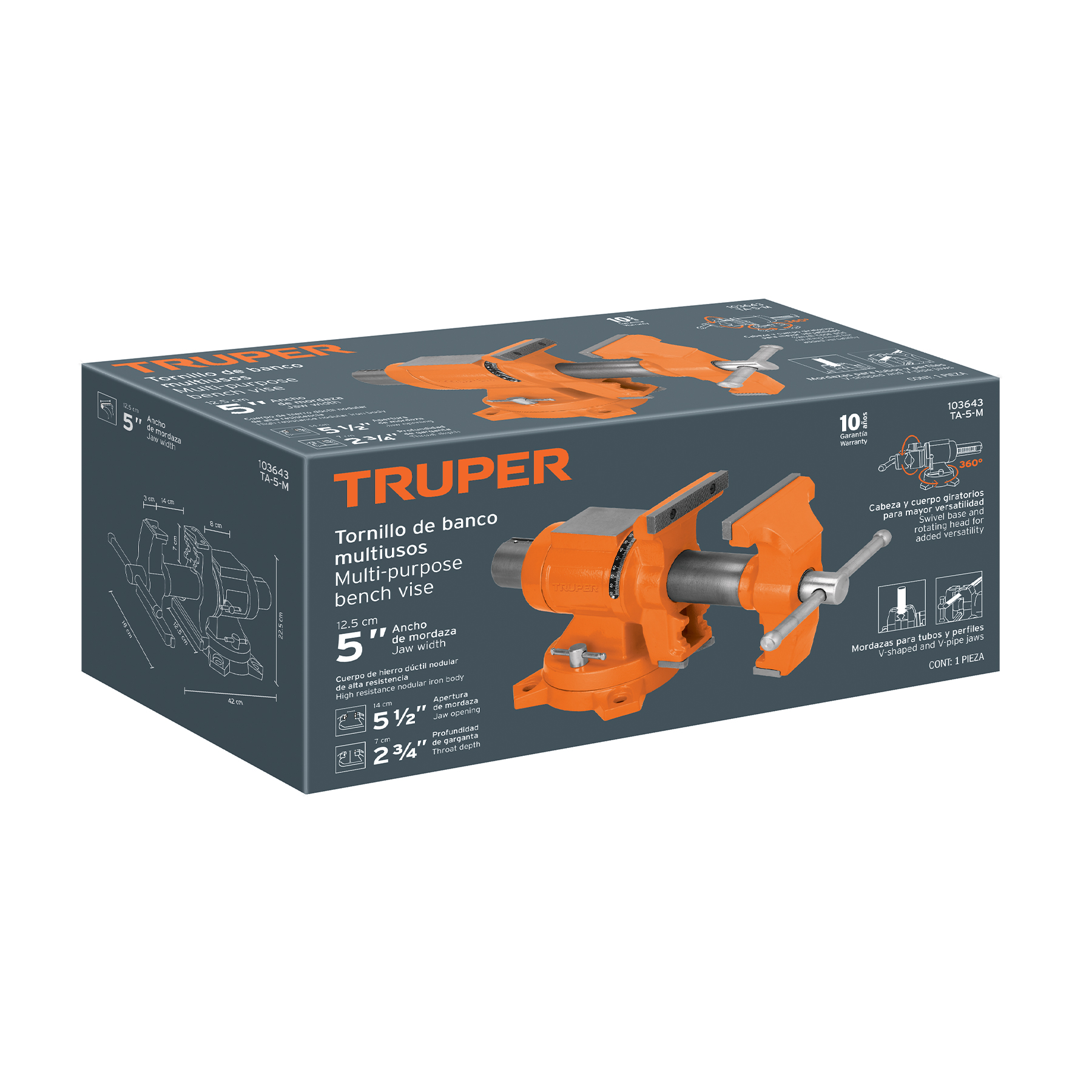 Tornillo de banco 5′ multipropósito de hierro dúctil, Truper