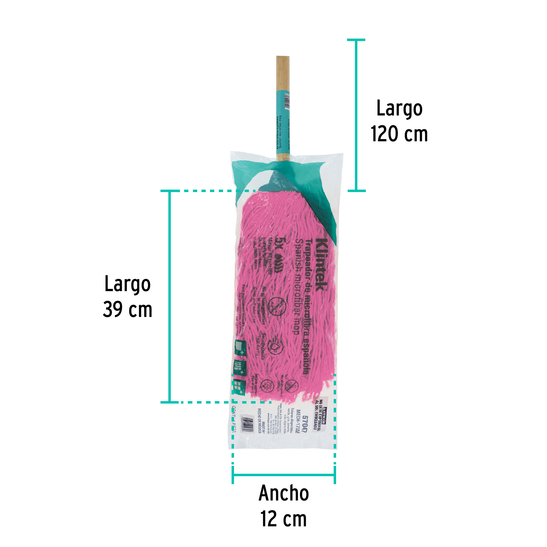 Trapeador de microfibra española, bastón de 120 cm, KLINTEK