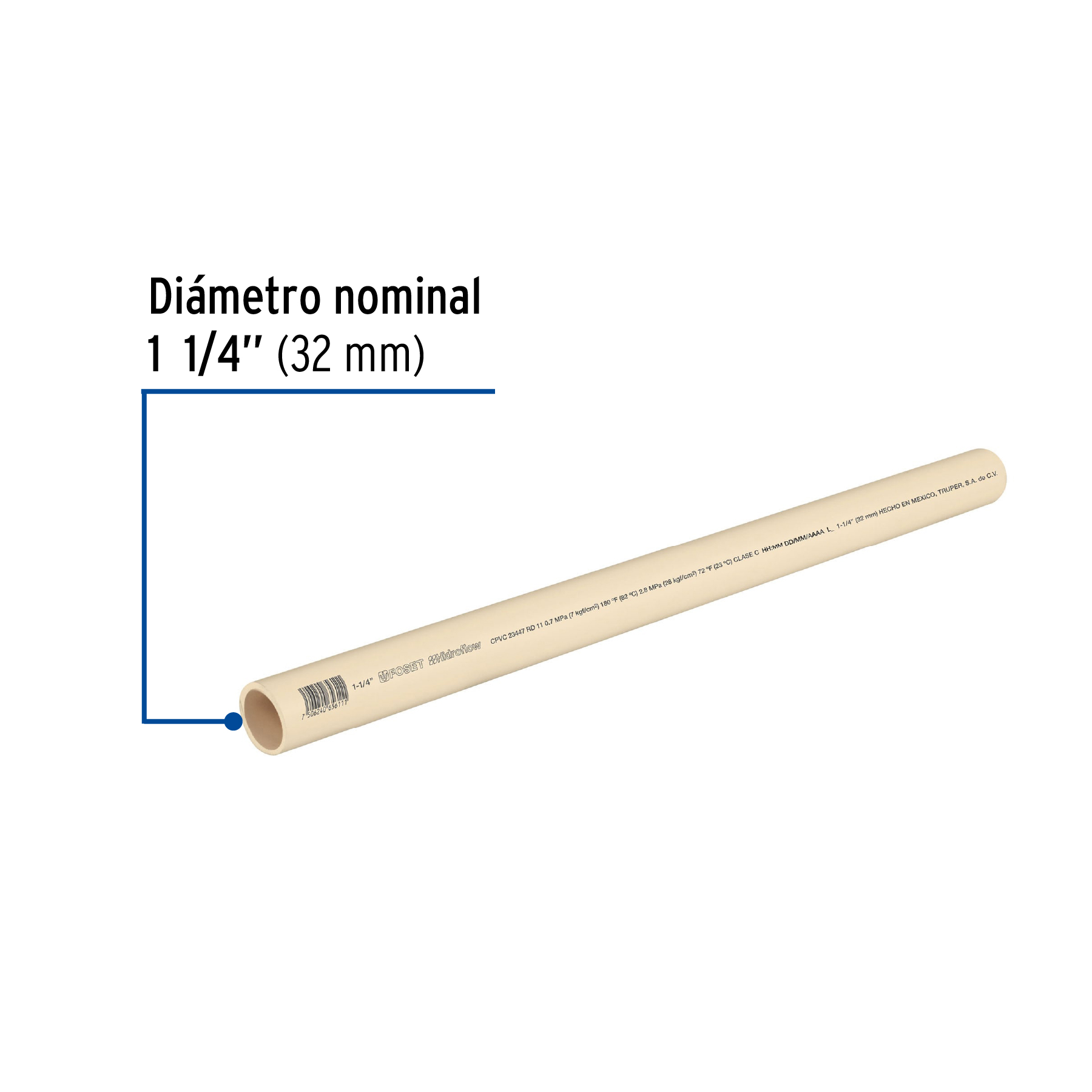 Tubo de 1-1/4′ CPVC hidráulico RD 11, 3m, 1.5kg, FOSET