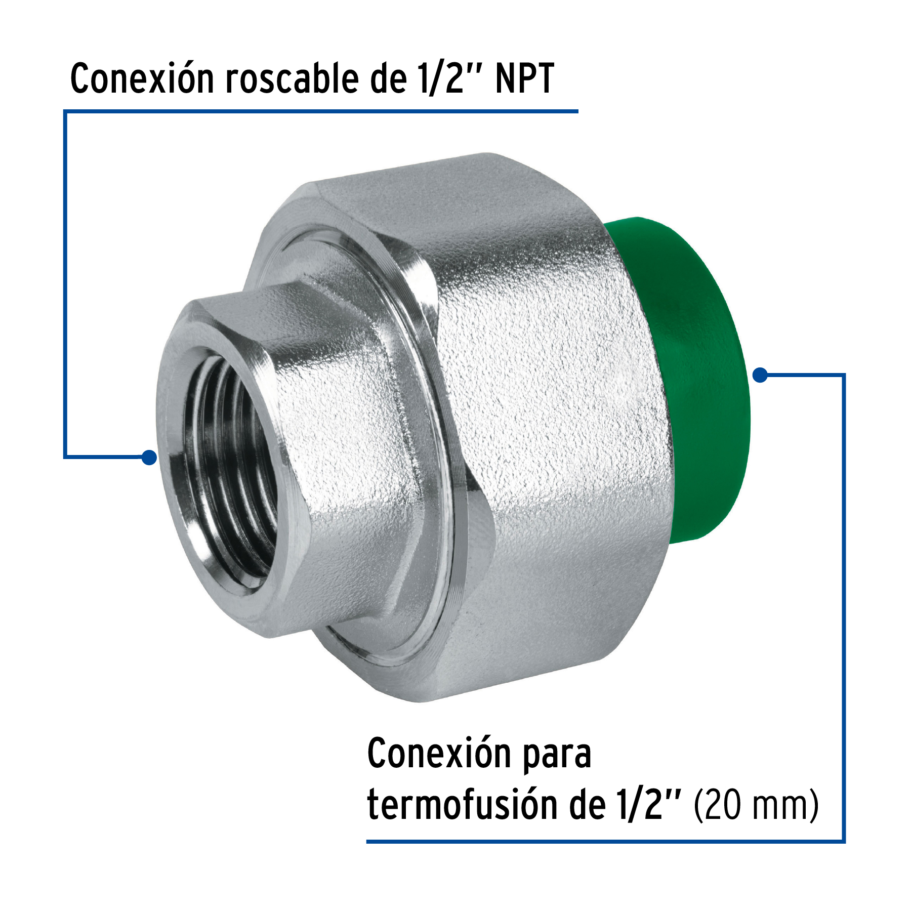 Tuerca unión PPR, mixta inserto metálico, 1/2′, Foset