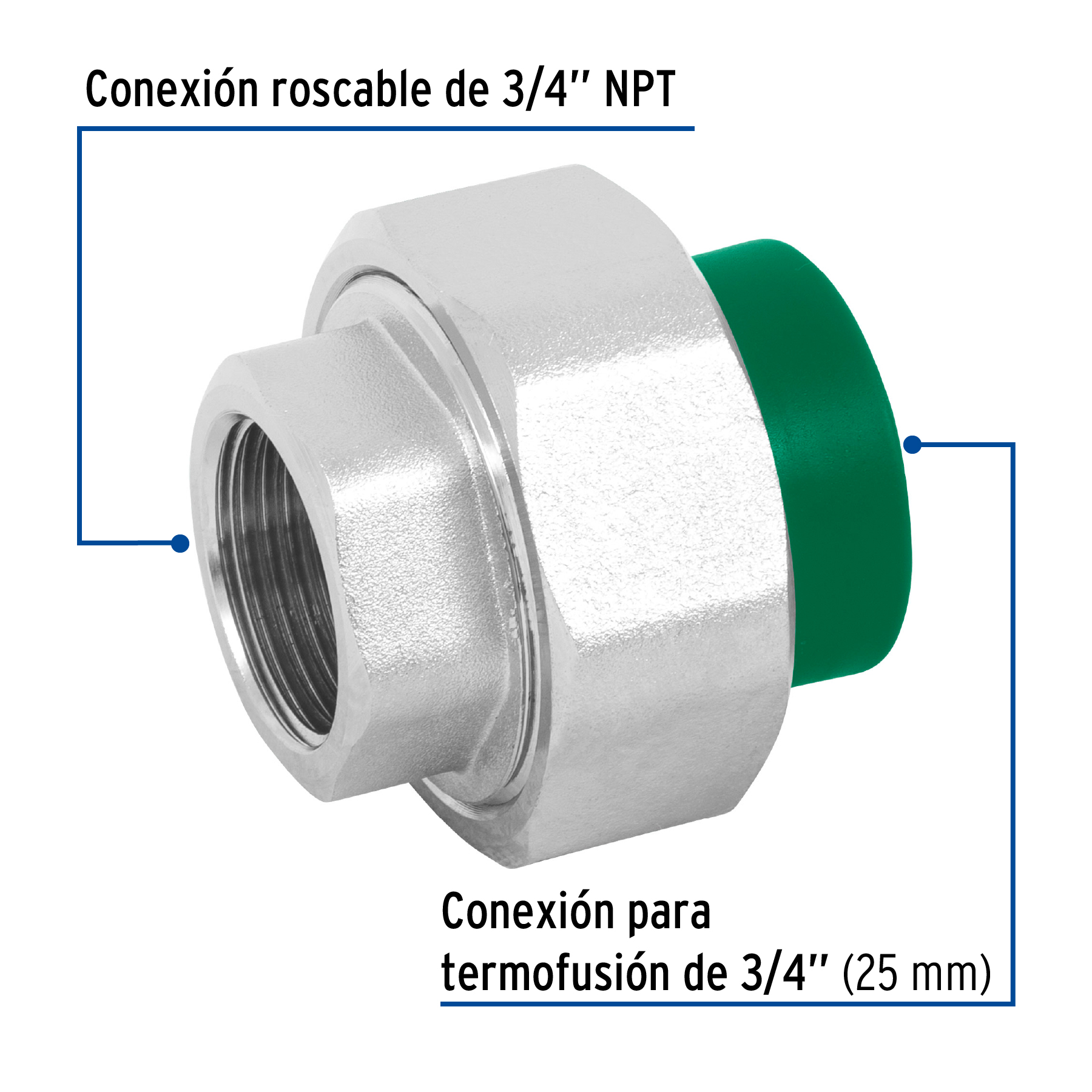 Tuerca unión PPR, mixta inserto metálico, 3/4′, Foset