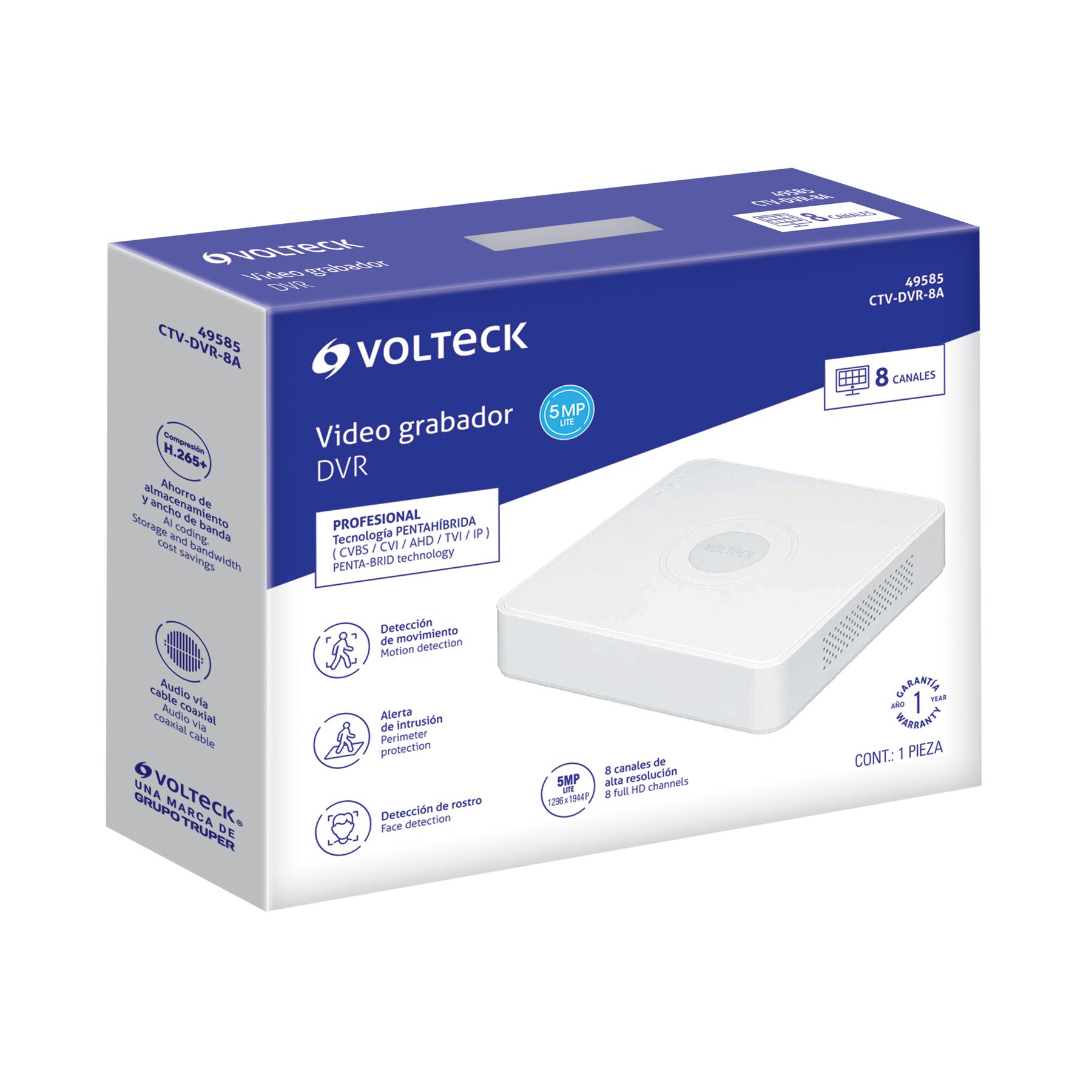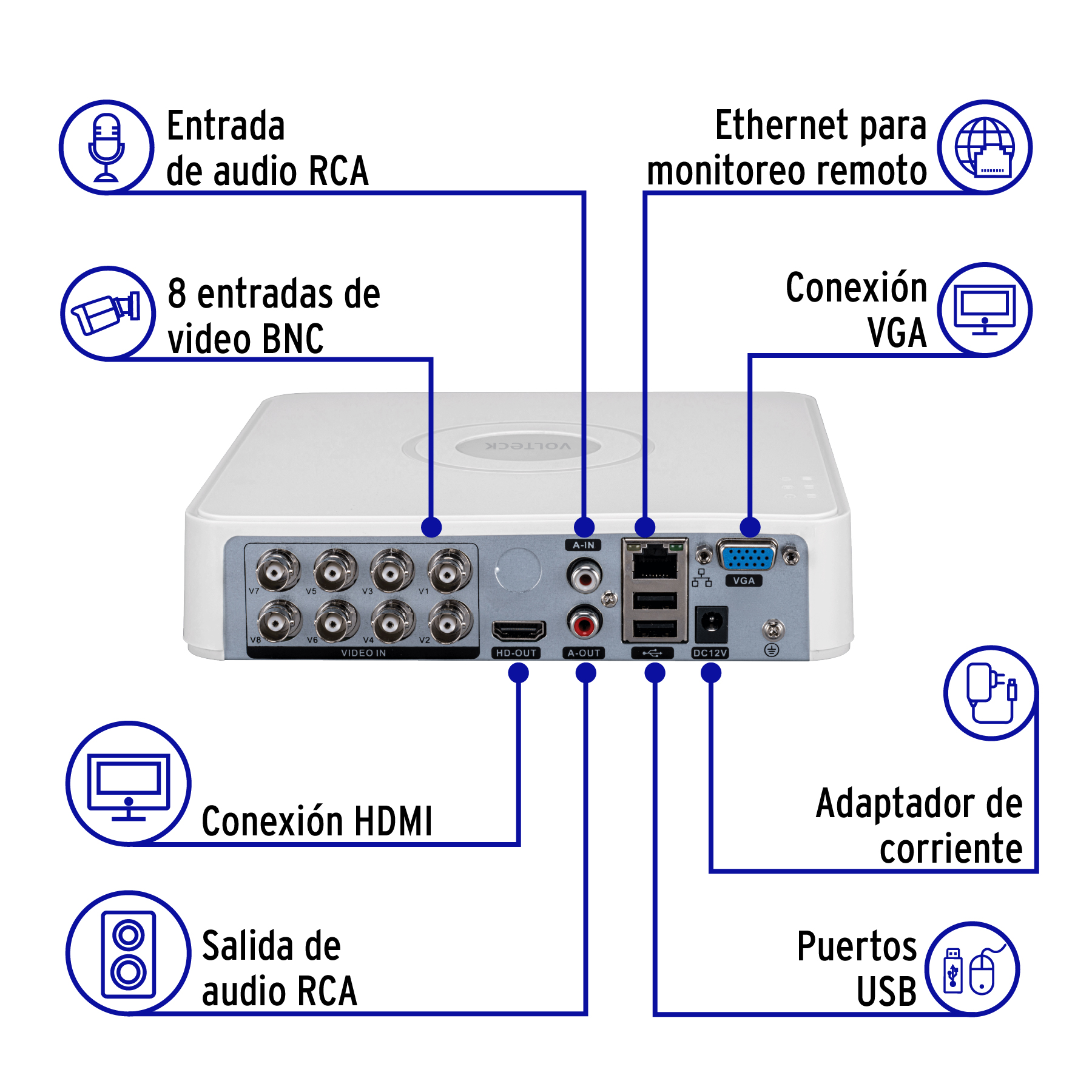 Video grabador DVR de 8 canales, 5MP, Volteck
